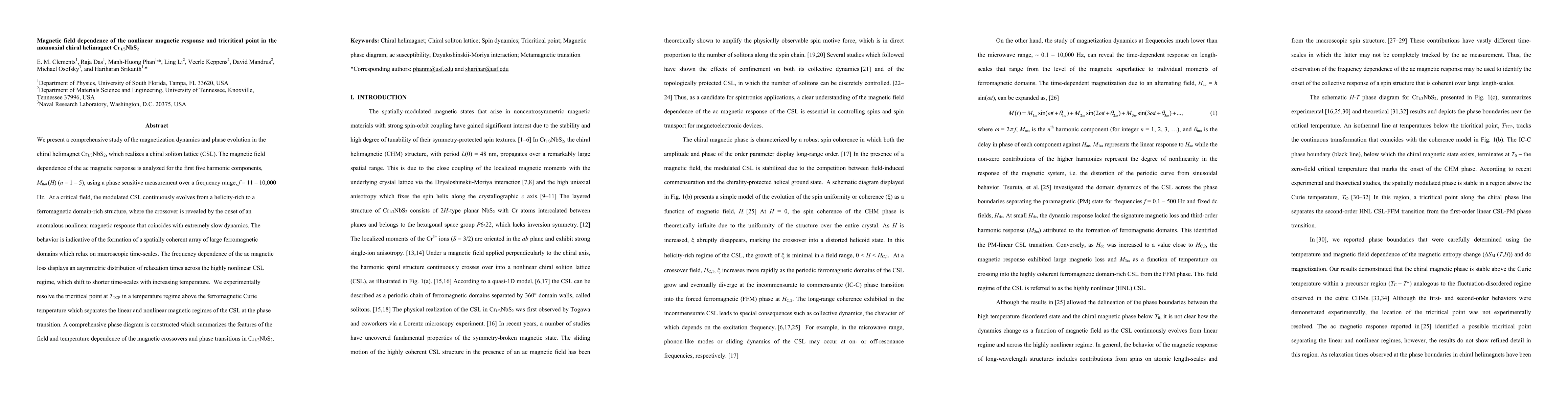 Researchers studied a material called Cr$_{1/3}$NbS$_{2}$, which exhibits a unique magnetic behavior that changes when exposed to different magnetic fields, and found a critical point where the material transitions from a chiral soliton lattice to a ferromagnetic state.