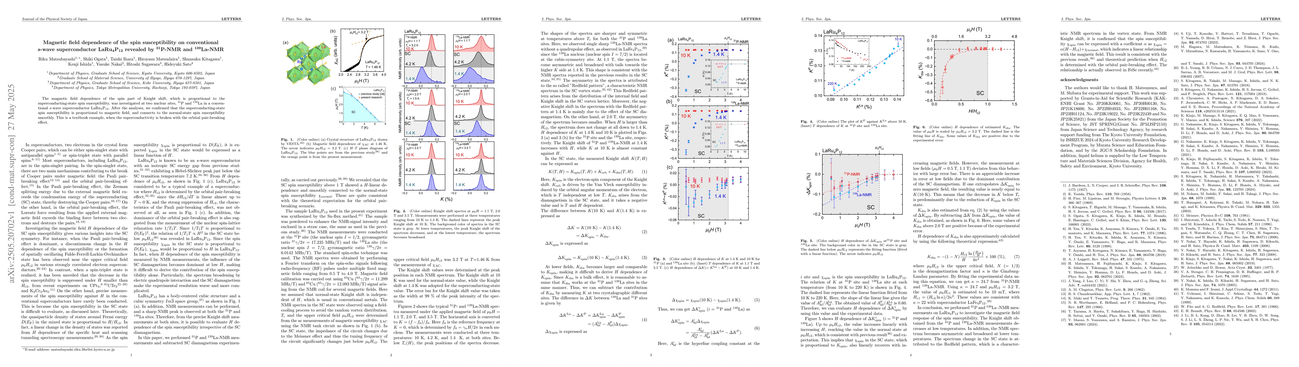 The paper presents a detailed NMR analysis revealing the linear relationship between magnetic field and superconducting-state spin susceptibility in LaRu$_4$P$_{12}$.