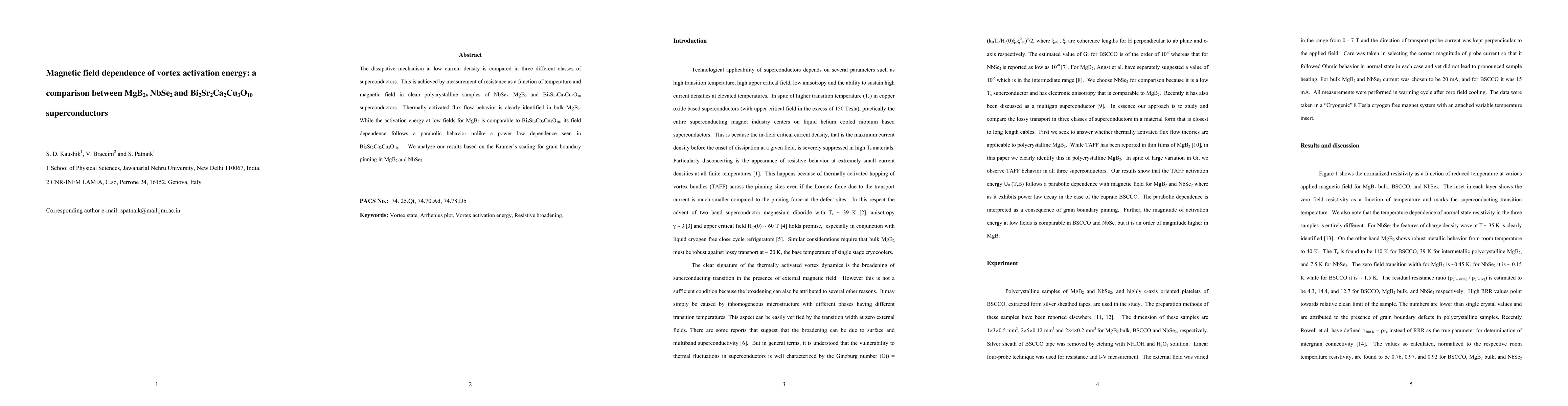 This study compares the vortex activation energy in MgB2, NbSe2, and Bi2Sr2Ca2Cu3O10 superconductors under varying magnetic fields, revealing that MgB2 exhibits parabolic field dependence in thermal flux flow, contrasting with the power law seen in Bi2Sr2Ca2Cu3O10. The analysis uses Kramer's scaling for grain boundary pinning to explain these differences.