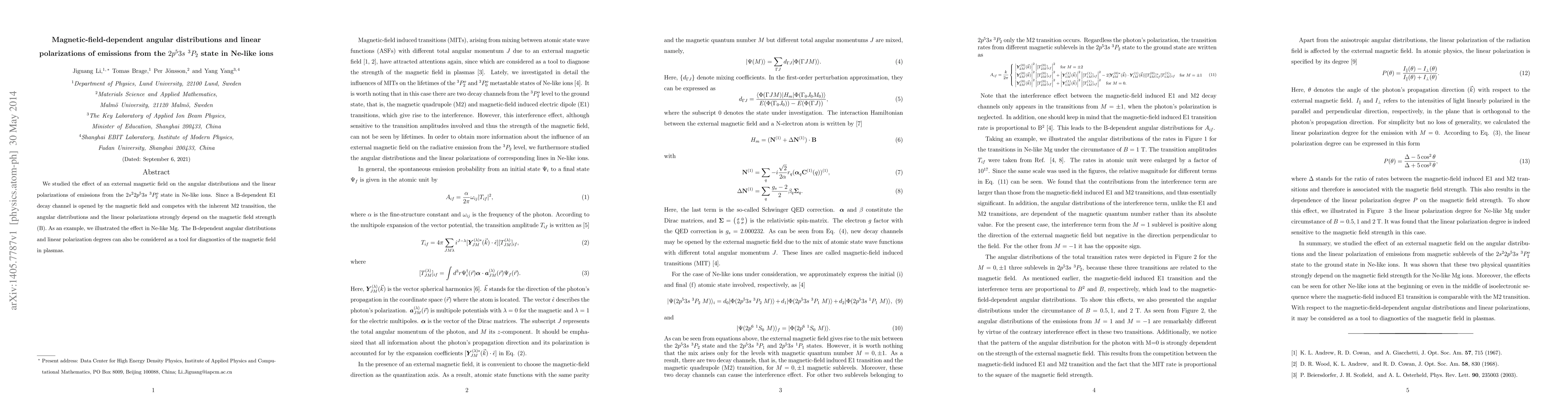 Researchers studied how a magnetic field affects emissions from Ne-like ions, revealing that it changes their angular distributions and linear polarizations, offering a diagnostic tool for magnetic fields in plasmas.