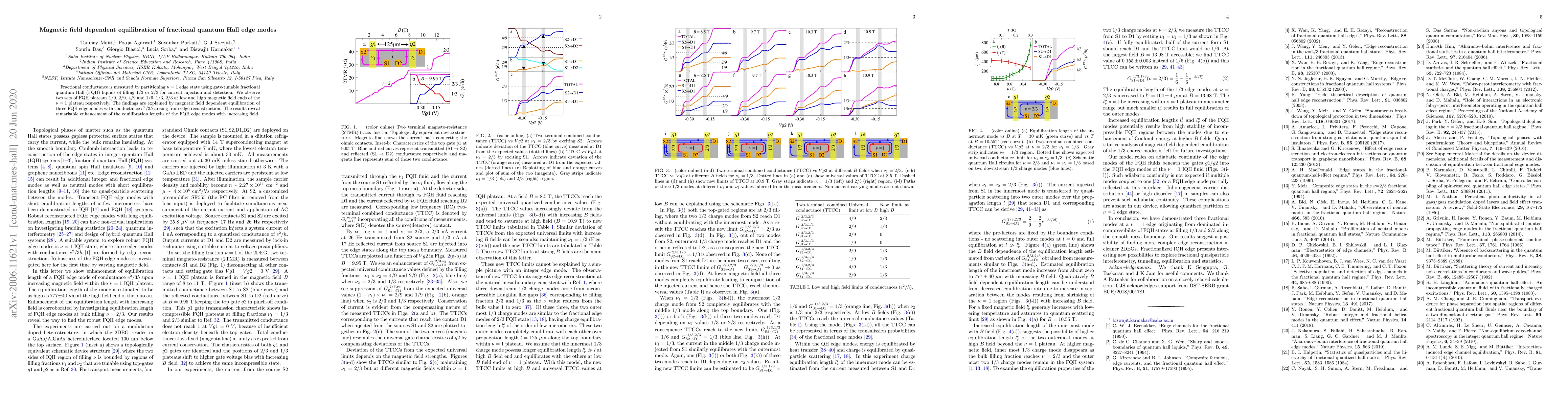 This study investigates the magnetic field dependency of fractional quantum Hall edge modes, showing two sets of plateaus at different magnetic field strengths. The research explains these observations through the magnetic field-dependent equilibration of three edge modes, revealing an enhancement in equilibration lengths with higher magnetic fields.
