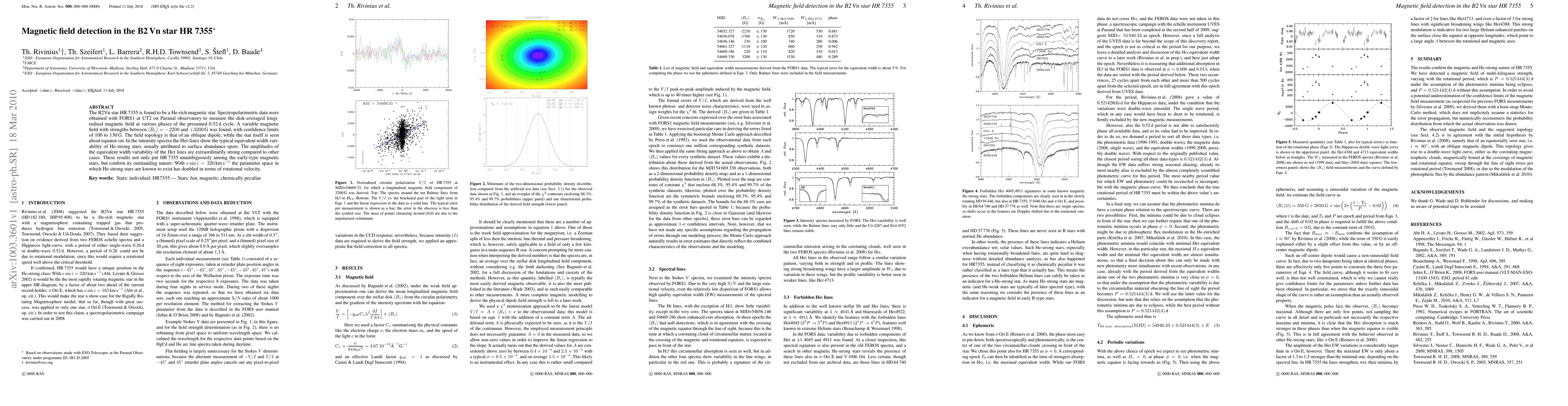The B2Vn star HR 7355 is found to be a He-rich magnetic star. Spectropolarimetric data were obtained with FORS1 at UT2 on Paranal observatory to measure the disk-averaged longitudinal magnetic field at various phases of the presumed 0.52 d cycle. A variable magnetic field with strengths between B_z = -2200 and +3200G was found, with confidence limits of 100 to 130G. The field topology is that of an oblique dipole, while the star itself is seen about equator-on. In the intensity spectra the HeI-lines show the typical equivalent width variability of He-strong stars, usually attributed to surface abundance spots. The amplitudes of the equivalent width variability of the HeI lines are extraordinarily strong compared to other cases. These results not only put HR 7355 unambiguously among the early-type magnetic stars, but confirm its outstanding nature: With v sin i = 320 km/s the parameter space in which He-strong stars are known to exist has doubled in terms of rotational velocity.