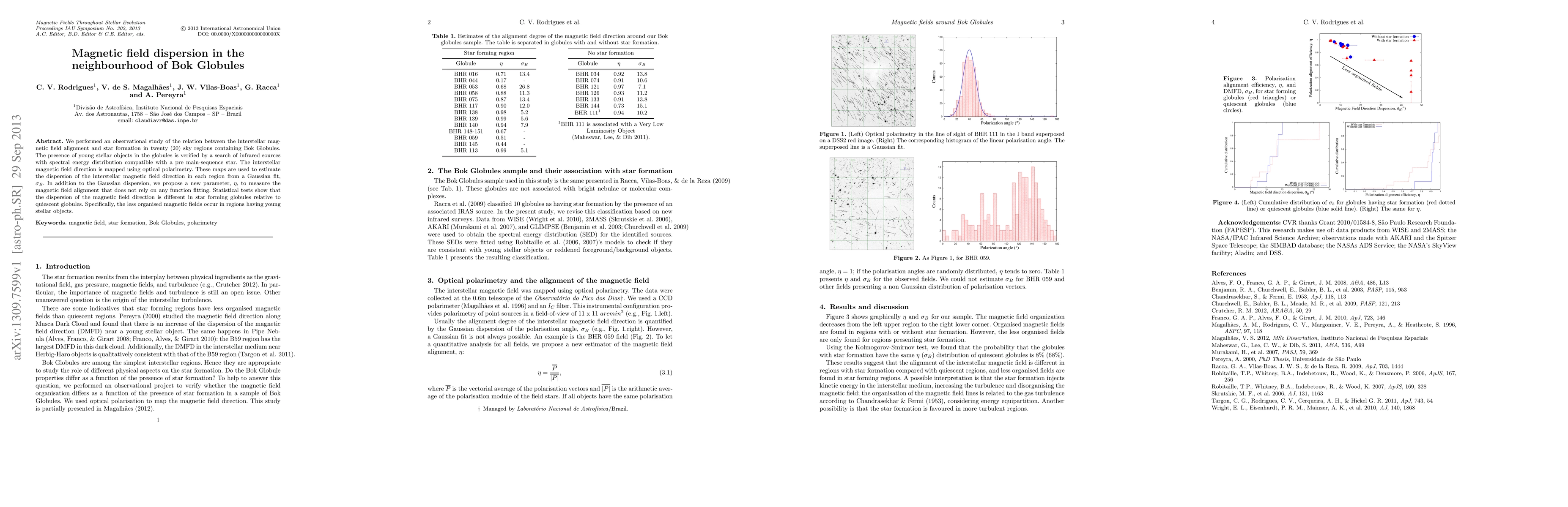 We performed an observational study of the relation between the interstellar magnetic field alignment and star formation in twenty (20) sky regions containing Bok Globules. The presence of young stellar objects in the globules is verified by a search of infrared sources with spectral energy distribution compatible with a pre main-sequence star. The interstellar magnetic field direction is mapped using optical polarimetry. These maps are used to estimate the dispersion of the interstellar magnetic field direction in each region from a Gaussian fit, sigma_B. In addition to the Gaussian dispersion, we propose a new parameter, eta, to measure the magnetic field alignment that does not rely on any function fitting. Statistical tests show that the dispersion of the magnetic field direction is different in star forming globules relative to quiescent globules. Specifically, the less organised magnetic fields occur in regions having young stellar objects.