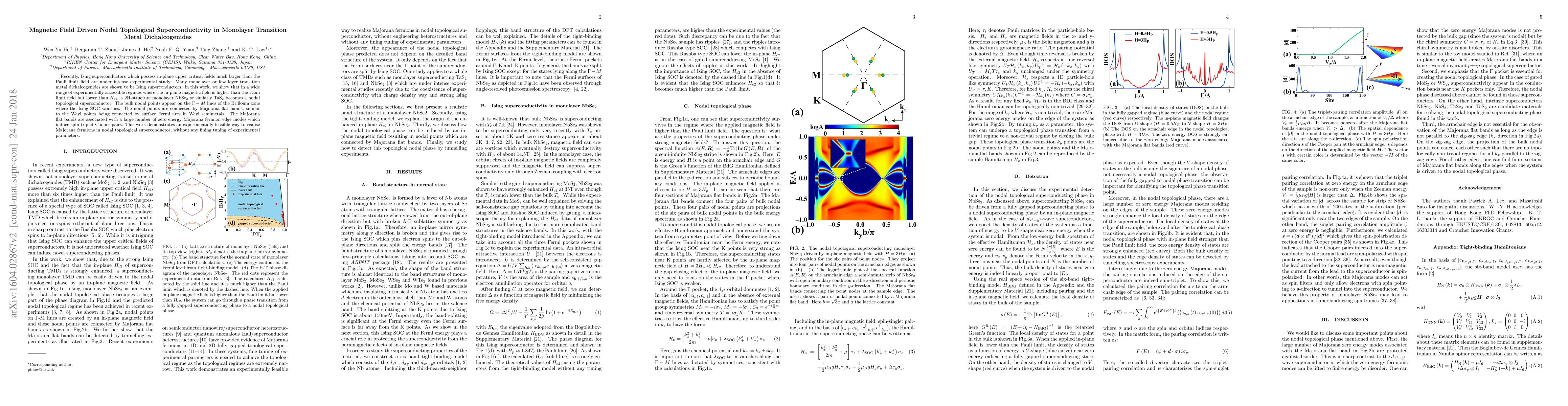 This paper demonstrates that monolayer NbSe$_2$ or TaS$_2$ can exhibit nodal topological superconductivity under in-plane magnetic fields exceeding the Pauli limit but below $H_{c2}$. The study reveals Majorana flat bands and zero-energy Majorana fermion edge modes, providing an experimentally accessible route to realize Majorana fermions.