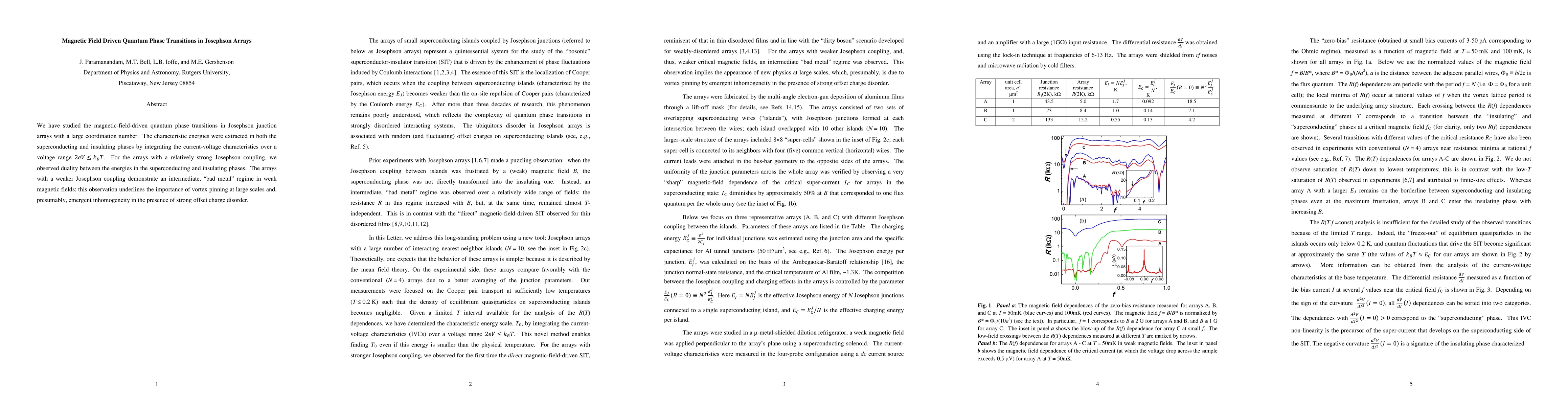 This study investigates magnetic-field-driven quantum phase transitions in Josephson junction arrays, revealing duality in energy characteristics between superconducting and insulating phases for strong coupling, and identifying a "bad metal" regime for weaker coupling, highlighting the role of vortex pinning and emergent inhomogeneity.