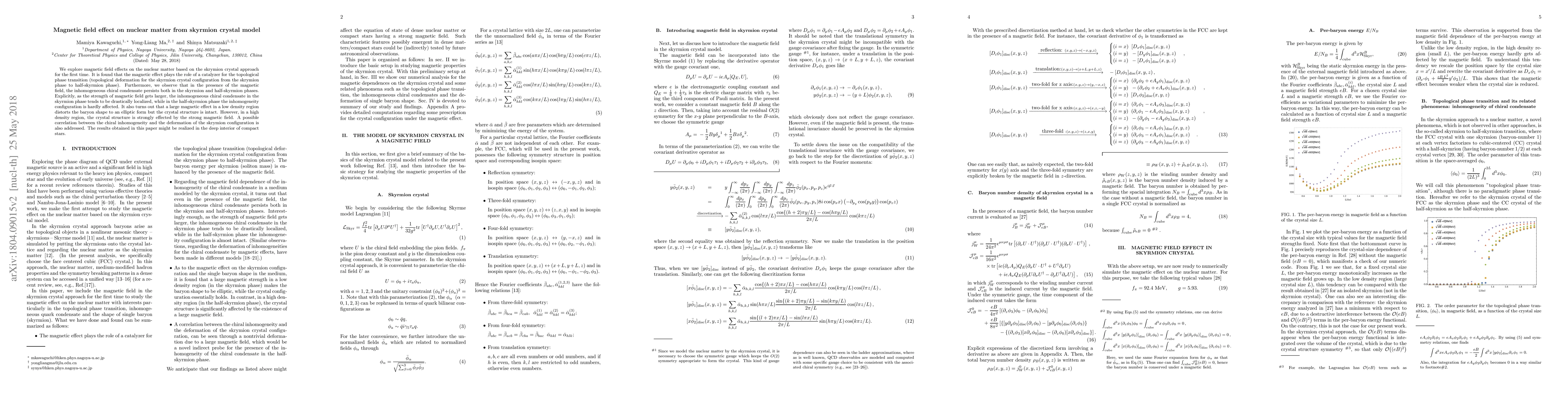 This paper investigates the magnetic field's impact on nuclear matter using the skyrmion crystal model, revealing it catalyzes the topological phase transition from skyrmion to half-skyrmion phase. The study finds that a magnetic field maintains inhomogeneous chiral condensates in both phases, with significant localization in the skyrmion phase and minimal effect in the half-skyrmion phase.