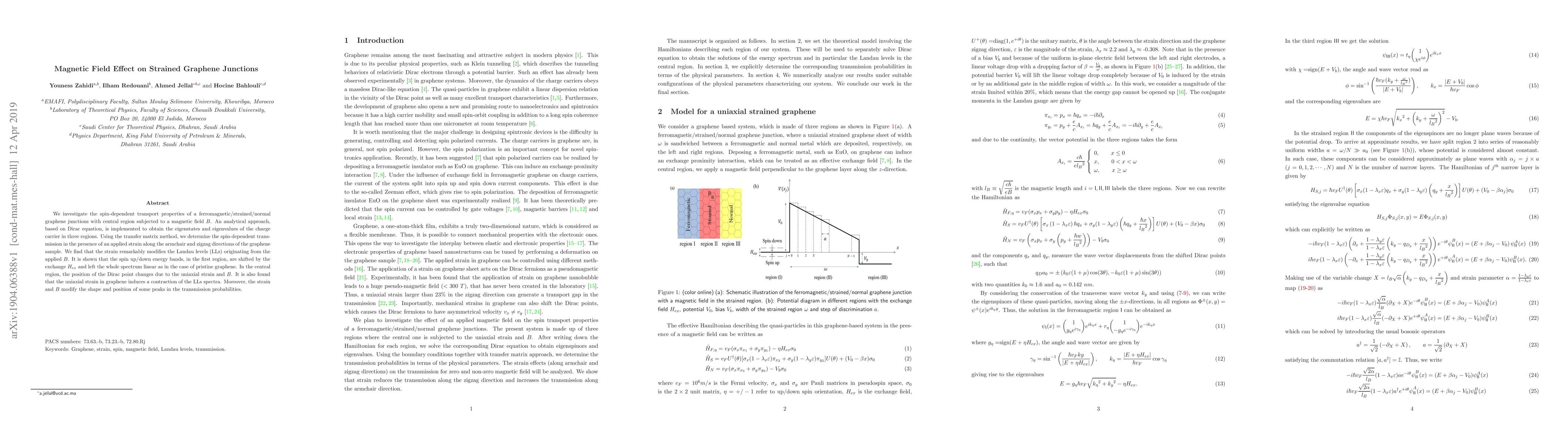Research investigates how a magnetic field affects strained graphene junctions, finding that strain modifies Landau levels and changes transmission probabilities in the presence of an applied magnetic field.