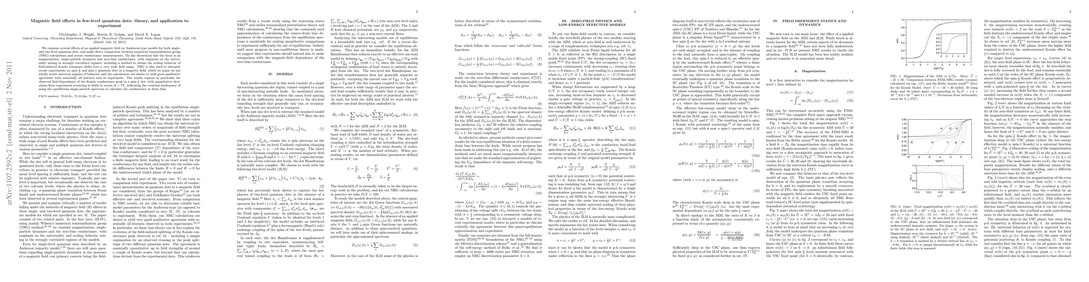 We examine several effects of an applied magnetic field on Anderson-type models for both single- and two-level quantum dots, and make direct comparison between numerical renormalization group (NRG) calculations and recent conductance measurements. On the theoretical side the focus is on magnetization, single-particle dynamics and zero-bias conductance, with emphasis on the universality arising in strongly correlated regimes; including a method to obtain the scaling behavior of field-induced Kondo resonance shifts over a very wide field range. NRG is also used to interpret recent experiments on spin-1/2 and spin-1 quantum dots in a magnetic field, which we argue do not wholly probe universal regimes of behavior; and the calculations are shown to yield good qualitative agreement with essentially all features seen in experiment. The results capture in particular the observed field-dependence of the Kondo conductance peak in a spin-1/2 dot, with quantitative deviations from experiment occurring at fields in excess of $\sim$ 5 T, indicating the eventual inadequacy of using the equilibrium single-particle spectrum to calculate the conductance at finite bias.