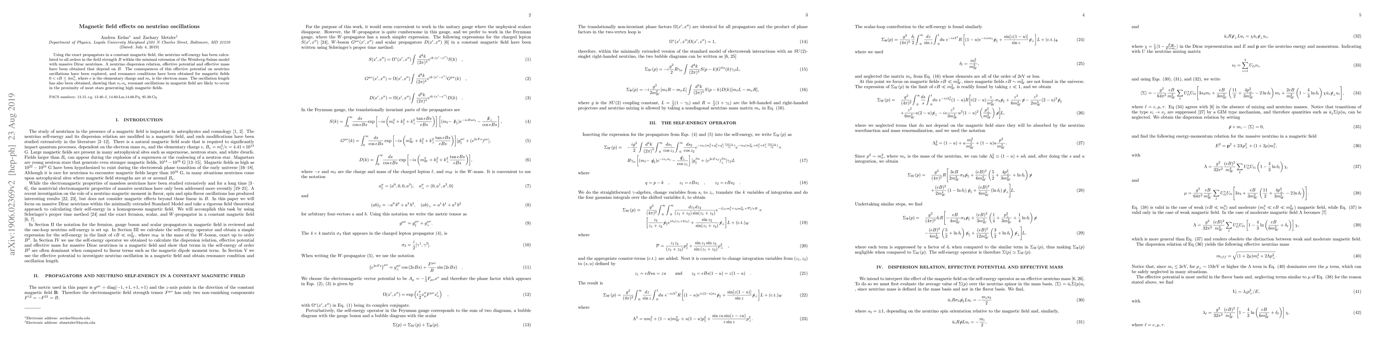 Using the exact propagators in a constant magnetic field, the neutrino