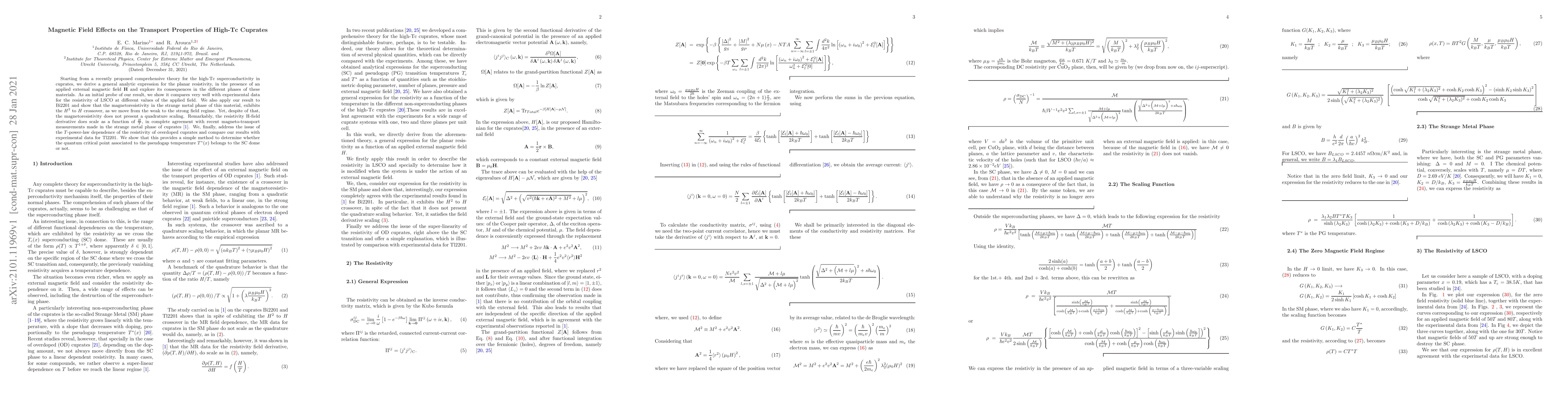 Starting from a recently proposed comprehensive theory for the high-Tc superconductivity in cuprates, we derive a general analytic expression for the planar resistivity, in the presence of an applied external magnetic field $\textbf{H}$ and explore its consequences in the different phases of these materials. As an initial probe of our result, we show it compares very well with experimental data for the resistivity of LSCO at different values of the applied field. We also apply our result to Bi2201 and show that the magnetoresistivity in the strange metal phase of this material, exhibits the $H^2$ to $H$ crossover, as we move from the weak to the strong field regime. Yet, despite of that, the magnetoresistivity does not present a quadrature scaling. Remarkably, the resistivity H-field derivative does scale as a function of $\frac{H}{T}$, in complete agreement with recent magneto-transport measurements made in the strange metal phase of cuprates \cite{Hussey2020}. We, finally, address the issue of the $T$-power-law dependence of the resistivity of overdoped cuprates and compare our results with experimental data for Tl2201. We show that this provides a simple method to determine whether the quantum critical point associated to the pseudogap temperature $T^*(x)$ belongs to the SC dome or not.