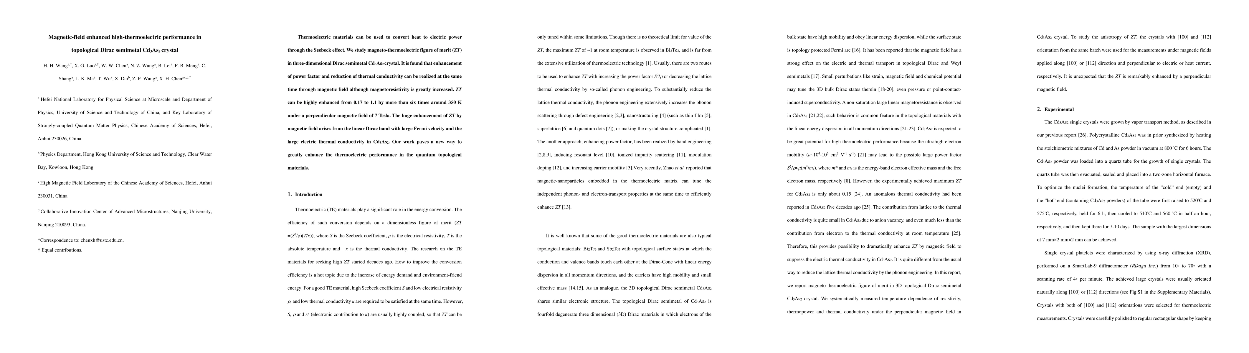 This paper investigates the thermoelectric performance in Cd$_3$As$_2$, a topological Dirac semimetal, under magnetic fields, finding a significant enhancement in the thermoelectric figure of merit (ZT) from 0.17 to 1.1 by over six times at 350 K with a 7 Tesla magnetic field. The enhancement is attributed to increased power factor and reduced thermal conductivity despite increased magnetoresistivity.