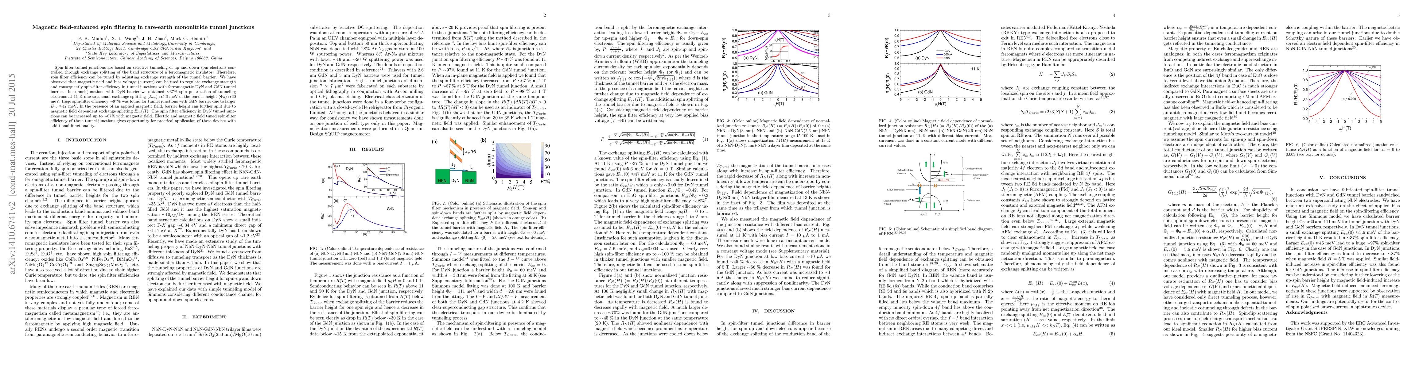 This paper investigates spin filter tunnel junctions with DyN and GdN barriers, demonstrating that magnetic field and bias voltage can enhance spin-filter efficiency by adjusting exchange splitting. DyN junctions achieved $\sim$37% spin polarization, while GdN junctions showed $\sim$97% efficiency, with magnetic fields further boosting DyN efficiency to $\sim$87%.