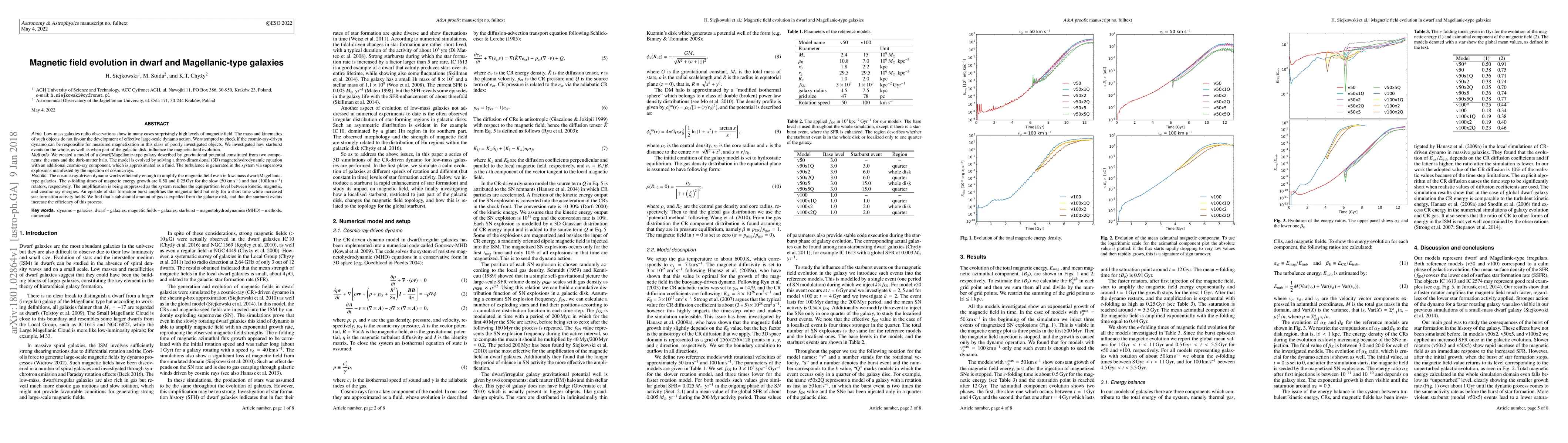 Low-mass galaxies radio observations show in many cases surprisingly high levels of magnetic field. The mass and kinematics of such objects do not favour the development of effective large-scale dynamo action. We attempted to check if the cosmic-ray-driven dynamo can be responsible for measured magnetization in this class of poorly investigated objects. We investigated how starburst events on the whole, as well as when part of the galactic disk, influence the magnetic field evolution. We created a model of a dwarf/Magellanic-type galaxy described by gravitational potential constituted from two components: the stars and the dark-matter halo. The model is evolved by solving a three-dimensional (3D) magnetohydrodynamic equation with an additional cosmic-ray component, which is approximated as a fluid. The turbulence is generated in the system via supernova explosions manifested by the injection of cosmic-rays.The cosmic-ray-driven dynamo works efficiently enough to amplify the magnetic field even in low-mass dwarf/Magellanic-type galaxies. The $e$-folding times of magnetic energy growth are 0.50 and 0.25 Gyr for the slow (50 km/s) and fast (100 km/s) rotators, respectively. The amplification is being suppressed as the system reaches the equipartition level between kinetic, magnetic, and cosmic-ray energies. An episode of star formation burst amplifies the magnetic field but only for a short time while increased star formation activity holds. We find that a substantial amount of gas is expelled from the galactic disk, and that the starburst events increase the efficiency of this process.