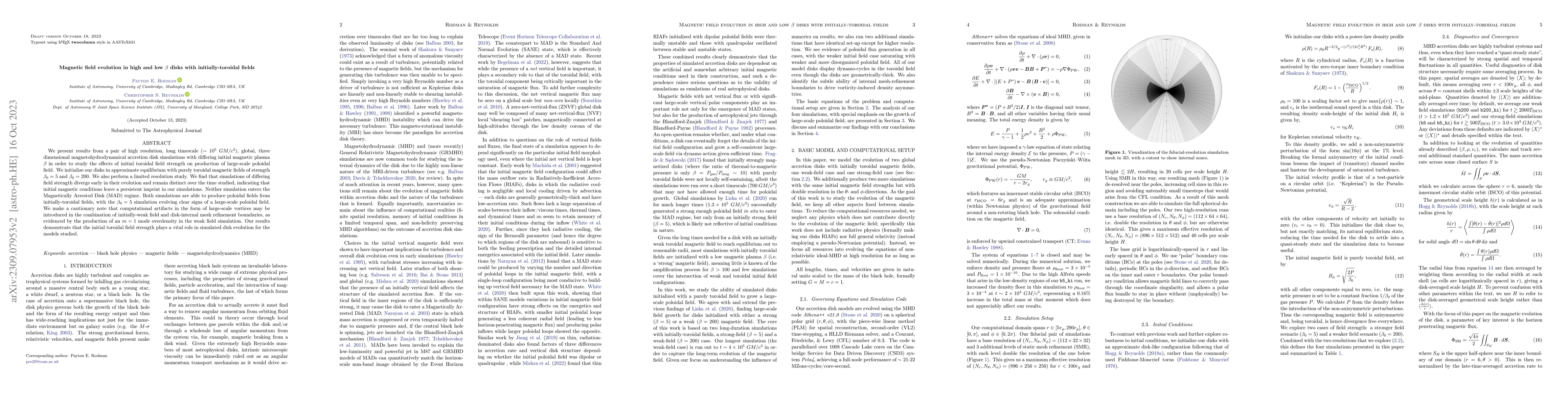 This study uses high-resolution magnetohydrodynamical simulations to investigate how initial toroidal magnetic field strength affects the evolution of large-scale poloidal fields in accretion disks, finding persistent differences based on initial $\beta$ values, with the lower $\beta$ simulation showing clear signs of poloidal field development. Caution is advised regarding computational artifacts in simulations with weak initial fields.