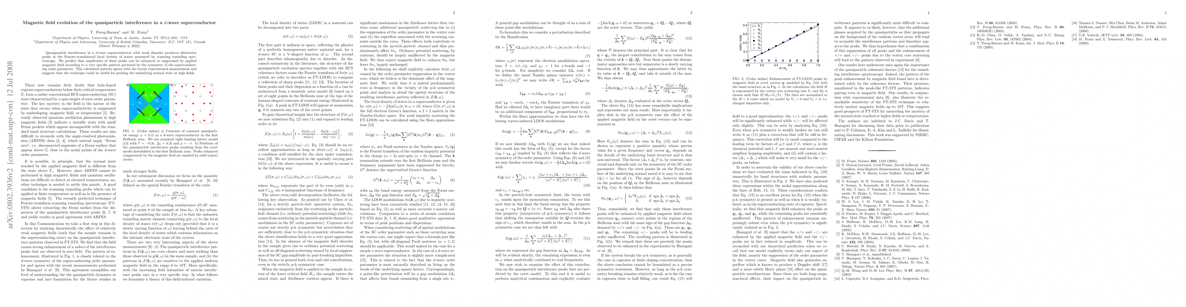 Quasiparticle interference in a d-wave superconductor with weak disorder produces distinctive peaks in the Fourier-transformed local density of states measured by scanning tunneling spectroscopy. We predict that amplitudes of these peaks can be enhanced or suppressed by applied magnetic field according to a very specific pattern governed by the symmetry of the superconducting order parameter. This calculated pattern agrees with the recent experimental measurement and suggests that the technique could be useful for probing the underlying normal state at high fields.
