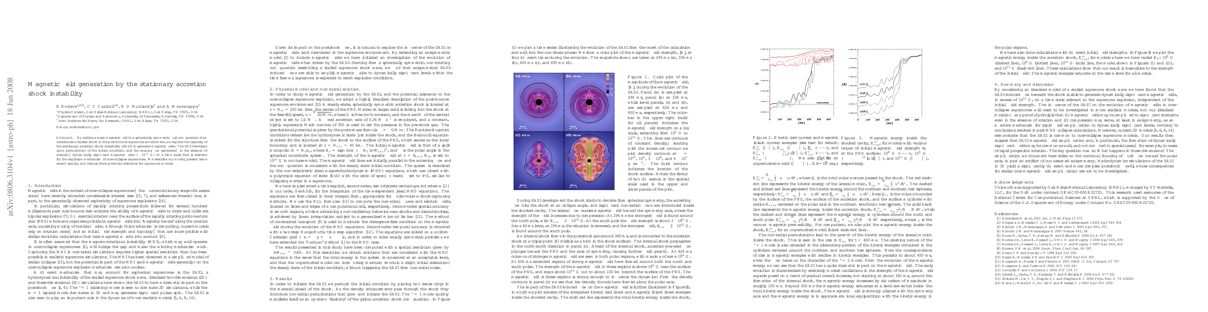 By adding a weak magnetic field to a spherically symmetric fluid configuration that caricatures a stalled shock in the post-bounce supernova environment, we explore the capacity of the stationary accretion shock instability (SASI) to generate magnetic fields. The SASI develops upon perturbation of the initial condition, and the ensuing flow generates--{\em in the absence of rotation}--dynamically significant magnetic fields ($\sim 10^{15}$ G) on a time scale that is relevant for the explosion mechanism of core-collapse supernovae. We describe our model, present some recent results, and discuss their potential relevance for supernova models.