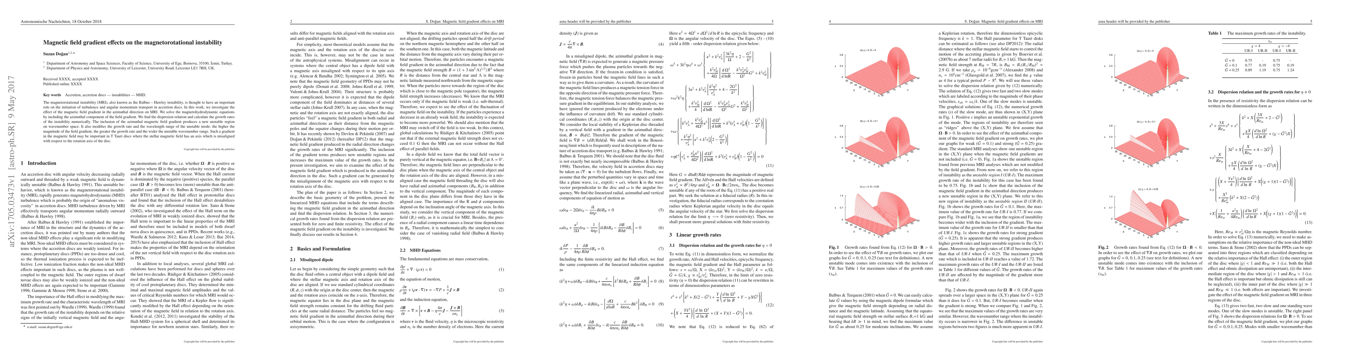 The magnetorotational instability (MRI), also known as the Balbus -- Hawley instability, is thought to have an important role on the initiation of turbulence and angular momentum transport in accretion discs. In this work, we investigate the effect of the magnetic field gradient in the azimuthal direction on MRI. We solve the magnetohydrodynamic equations by including the azimuthal component of the field gradient. We find the dispersion relation and calculate the growth rates of the instability numerically. The inclusion of the azimuthal magnetic field gradient produces a new unstable region on wavenumber space. It also modifies the growth rate and the wavelength range of the unstable mode: the higher the magnitude of the field gradient, the greater the growth rate and the wider the unstable wavenumber range. Such a gradient in the magnetic field may be important in T Tauri discs where the stellar magnetic field has an axis which is misaligned with respect to the rotation axis of the disc.