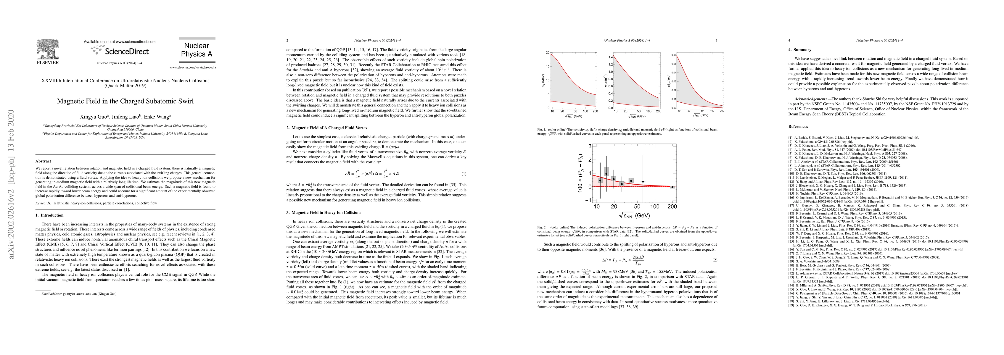 We report a novel relation between rotation and magnetic field in a charged fluid system: there is naturally a magnetic field along the direction of fluid vorticity due to the currents associated with the swirling charges. This general connection is demonstrated using a fluid vortex. Applying the idea to heavy ion collisions we propose a new mechanism for generating in-medium magnetic field with a relatively long lifetime. We estimate the magnitude of this new magnetic field in the Au-Au colliding systems across a wide span of collisional beam energy. Such a magnetic field is found to increase rapidly toward lower beam energy and could account for a significant amount of the experimentally observed global polarization difference between hyperons and anti-hyperons.