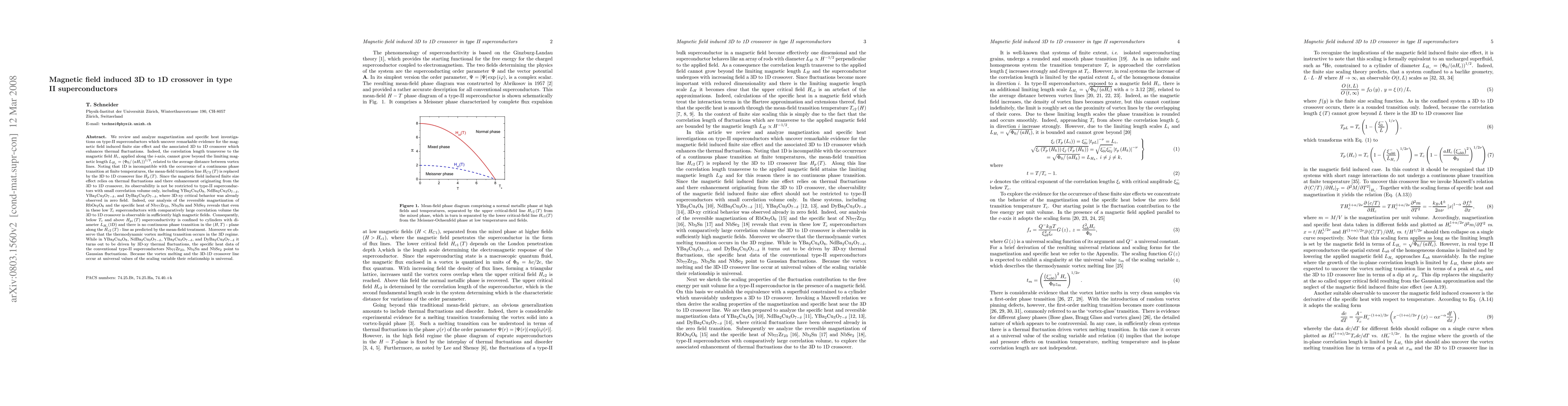 Summary: This paper reviews magnetization and specific heat studies in type II superconductors, revealing significant evidence of a magnetic field-induced transition from three-dimensional to one-dimensional behavior that amplifies thermal fluctuations.