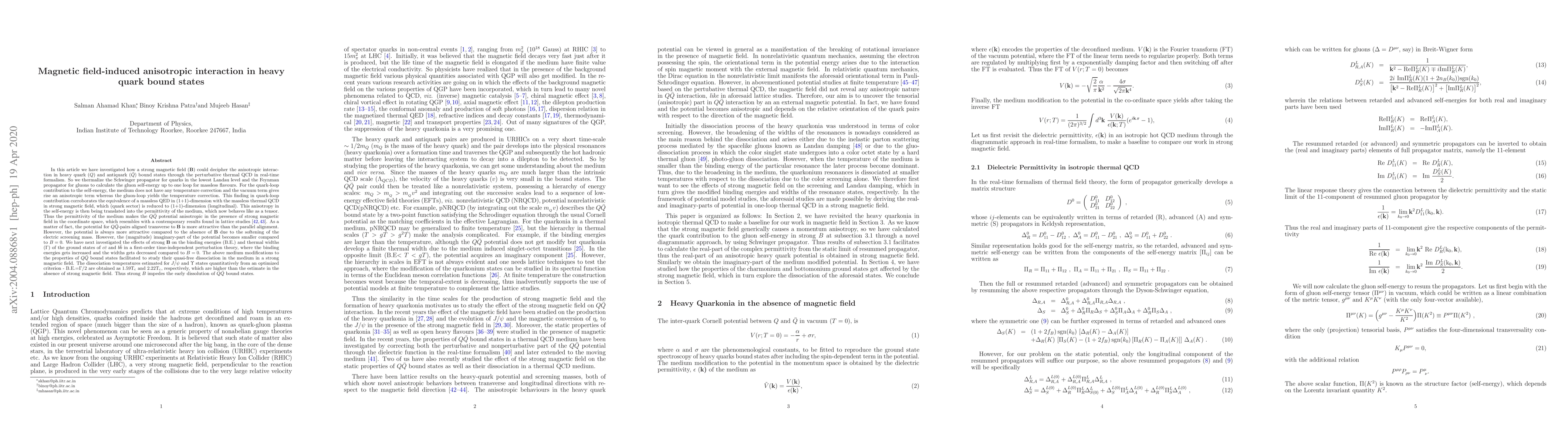 A strong magnetic field enhances anisotropic interaction in heavy quark bound states, making aligned transverse potential more attractive than parallel alignment, and increasing binding energies while decreasing widths.