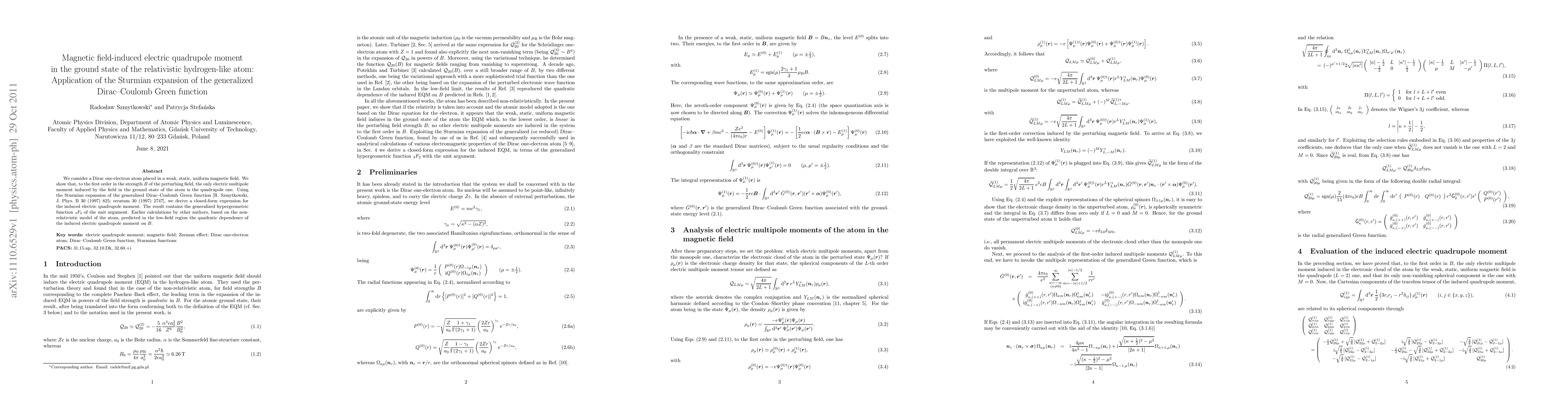 This paper investigates the magnetic field-induced electric quadrupole moment in the ground state of a relativistic hydrogen-like atom under a weak magnetic field. It derives a closed-form expression for this quadrupole moment using the Sturmian expansion of the generalized Dirac-Coulomb Green function, revealing a first-order dependence on the magnetic field strength.