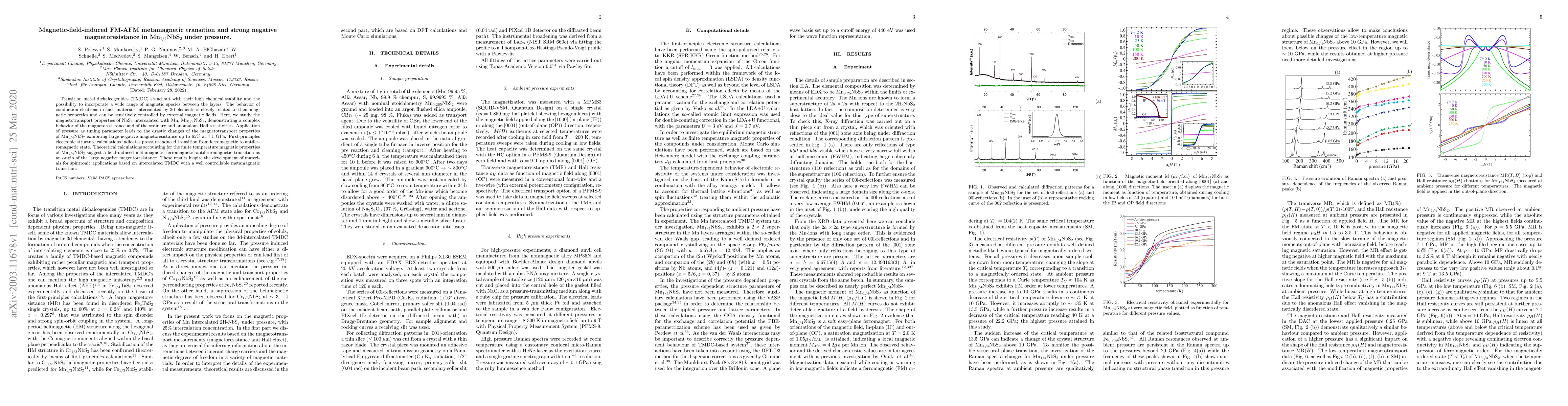 Transition metal dichalcogenides (TMDC) stand out with their high chemical stability and the possibility to incorporate a wide range of magnetic species between the layers. The behavior of conduction electrons in such materials intercalated by 3d-elements is closely related to their magnetic properties and can be sensitively controlled by external magnetic fields. Here, we study the magnetotransport properties of NbS$_2$ intercalated with Mn, Mn$_{1/4}$NbS$_2$, demonstrating a complex behavior of the magnetoresistance and of the ordinary and anomalous Hall resistivities. Application of pressure as tuning parameter leads to the drastic changes of the magnetotransport properties of Mn$_{1/4}$NbS$_2$ exhibiting large negative magnetoresistance up to $65 \%$ at 7.1 GPa. First-principles electronic structure calculations indicates pressure-induced transition from ferromagnetic to antiferromagnetic state. Theoretical calculations accounting for the finite temperature magnetic properties of Mn$_{1/4}$NbS$_2$ suggest a field-induced metamagnetic ferromagnetic-antiferromagnetic transition as an origin of the large negative magentoresistance. These results inspire the development of materials for spintronic applications based on intercalated TMDC with a well controllable metamagnetic transition.