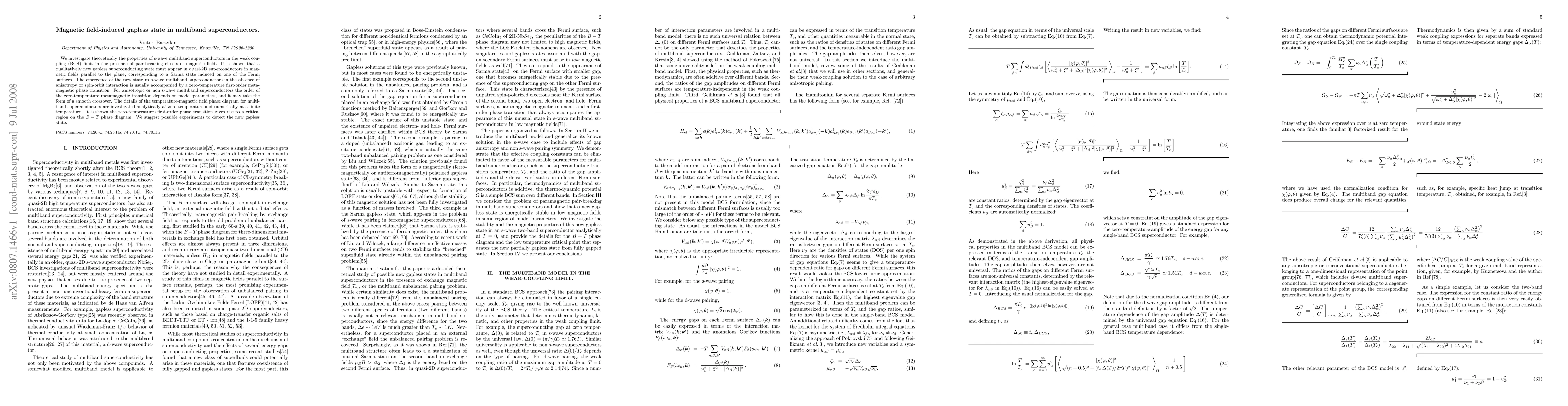 This paper theoretically explores the emergence of a gapless superconducting state in s-wave multiband superconductors under magnetic fields, revealing a Sarma state in quasi-2D systems and a zero-temperature first-order metamagnetic transition. The study also investigates the phase diagram and suggests experimental methods to detect this new state.