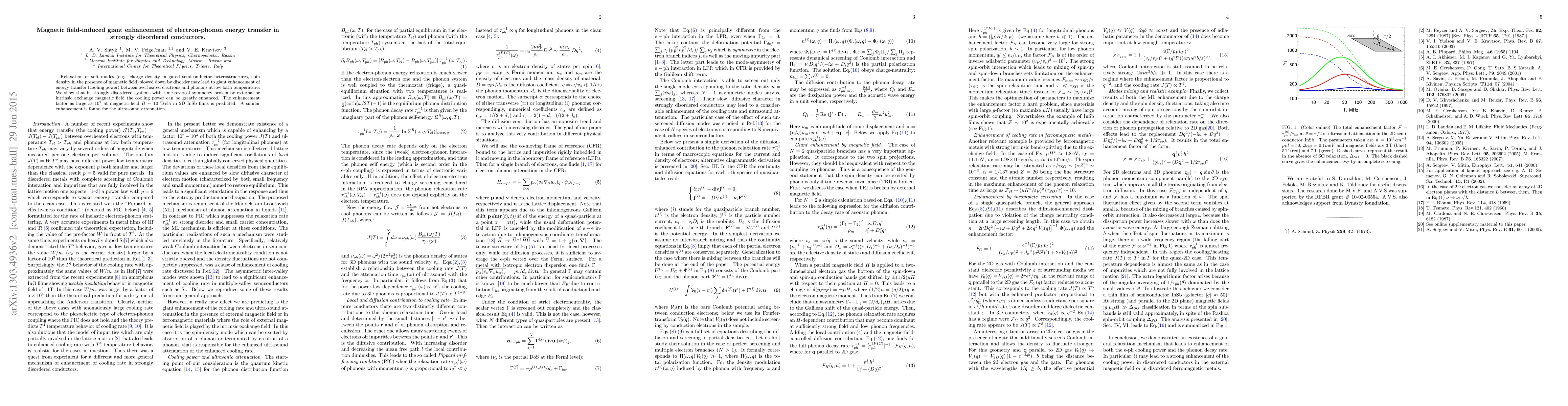 Relaxation of soft modes (e.g. charge density in gated semiconductor heterostructures, spin density in the presence of magnetic field) slowed down by disorder may lead to giant enhancement of energy transfer (cooling power) between overheated electrons and phonons at low bath temperature. We show that in strongly disordered systems with time-reversal symmetry broken by external or intrinsic exchange magnetic field the cooling power can be greatly enhanced. The enhancement factor as large as $10^{2}$ at magnetic field $B \sim 10$ Tesla in 2D {\rm InSb} films is predicted. A similar enhancement is found for the ultrasound attenuation.