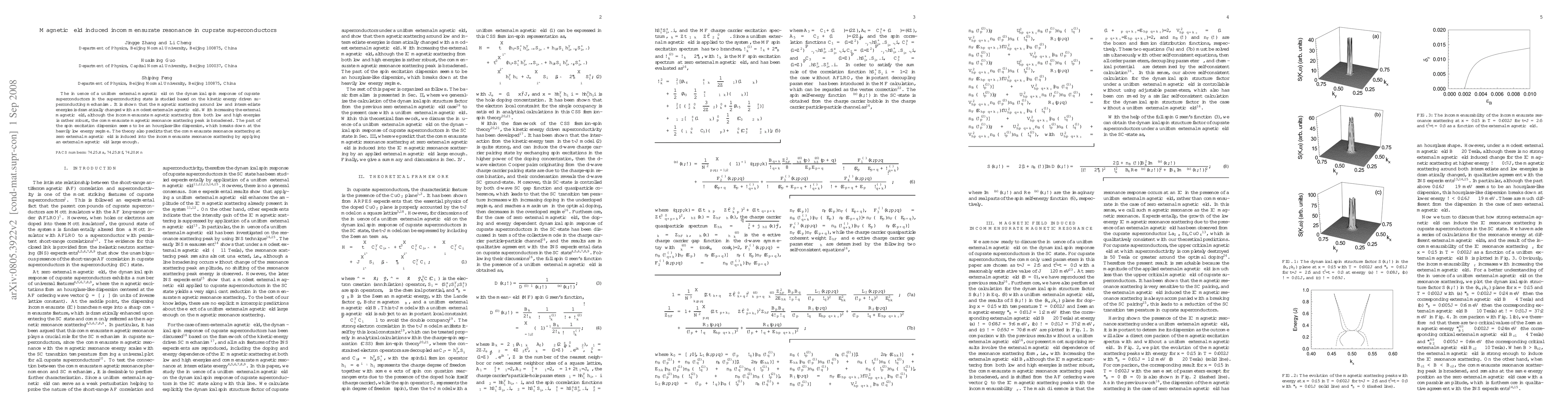 This research investigates how a uniform external magnetic field influences the spin response dynamics in cuprate superconductors, showing that it induces an incommensurate resonance, transforming the commensurate resonance scattering peak, and altering the spin excitation dispersion, especially at low energies. The theory predicts that a sufficiently large magnetic field can shift the resonance scattering from commensurate to incommensurate.