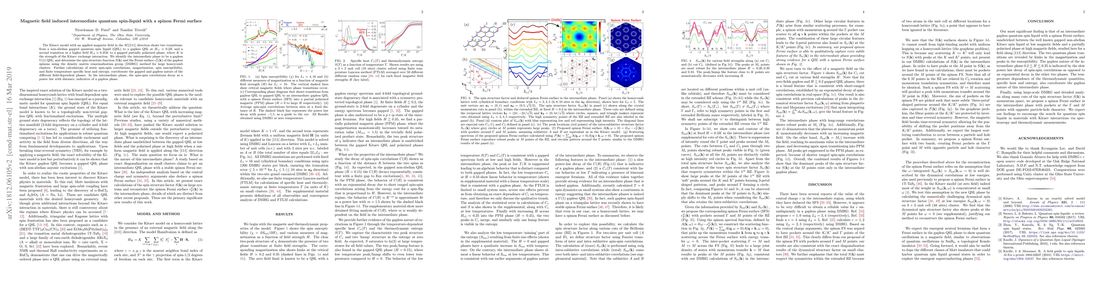 This paper investigates the Kitaev model under an applied magnetic field, revealing two transitions leading to a gapless U(1) quantum spin liquid and a partially polarized phase. The intermediate phase exhibits a spinon Fermi surface and power-law decay of spin-spin correlations, confirmed by DMRG calculations and thermodynamic properties.