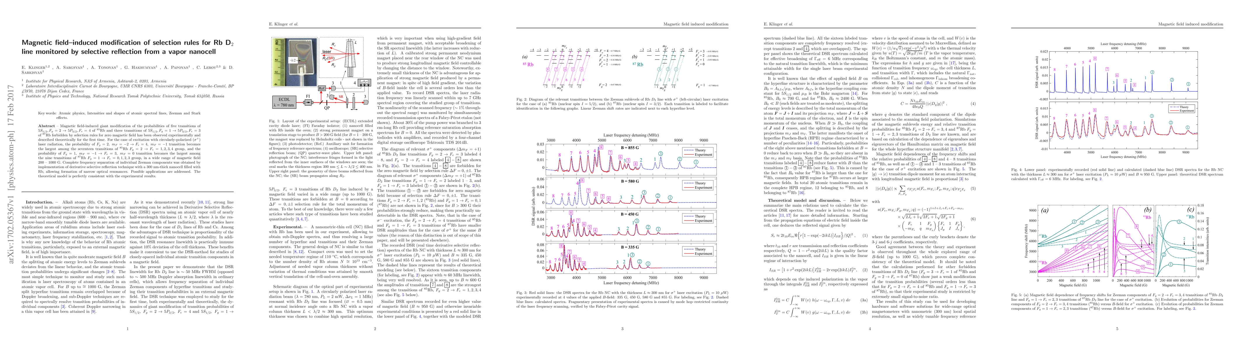 This paper reports the magnetic field-induced modification of selection rules for Rb D$_2$ transitions, revealing significant changes in transition probabilities for $^{85}$Rb and $^{87}$Rb under magnetic fields. The study employs a nanocell and derivative selective reflection to achieve complete frequency separation of Zeeman components, with theoretical models matching experimental observations.