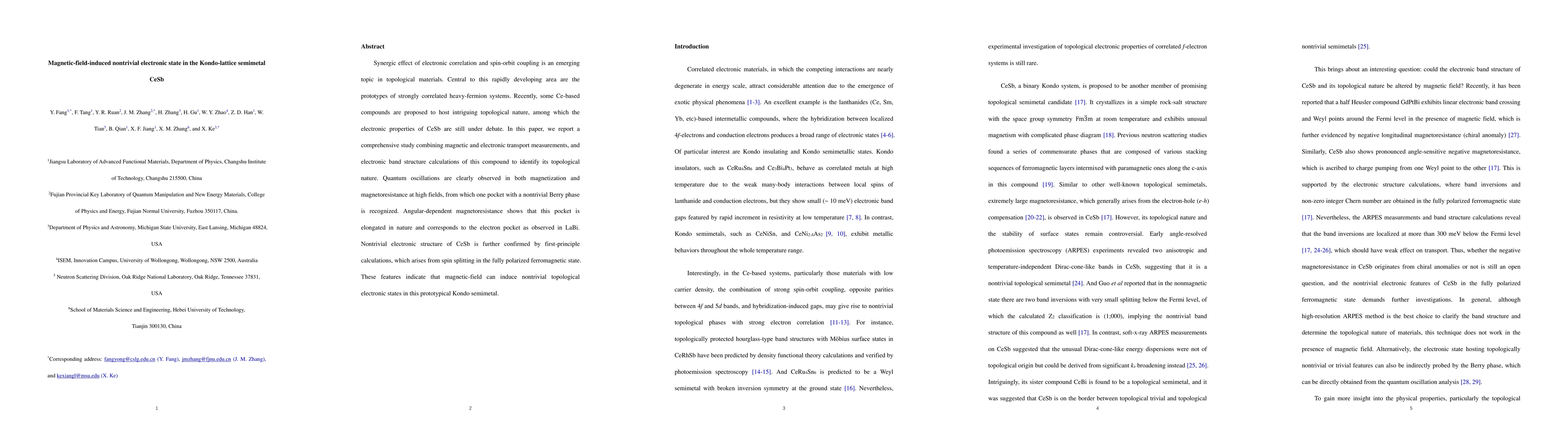 Synergic effect of electronic correlation and spin-orbit coupling is an emerging topic in topological materials. Central to this rapidly developing area are the prototypes of strongly correlated heavy-fermion systems. Recently, some Ce-based compounds are proposed to host intriguing topological nature, among which the electronic properties of CeSb are still under debate. In this paper, we report a comprehensive study combining magnetic and electronic transport measurements, and electronic band structure calculations of this compound to identify its topological nature. Quantum oscillations are clearly observed in both magnetization and magnetoresistance at high fields, from which one pocket with a nontrivial Berry phase is recognized. Angular-dependent magnetoresistance shows that this pocket is elongated in nature and corresponds to the electron pocket as observed in LaBi. Nontrivial electronic structure of CeSb is further confirmed by first-principle calculations, which arises from spin splitting in the fully polarized ferromagnetic state. These features indicate that magnetic-field can induce nontrivial topological electronic states in this prototypical Kondo semimetal.