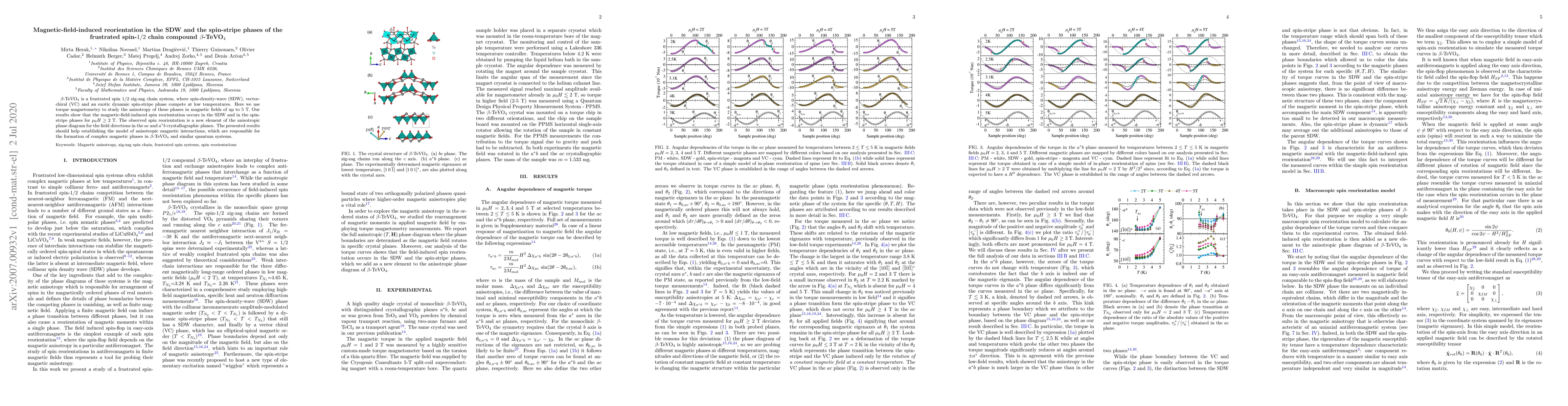 This study investigates the magnetic anisotropy in $\beta$-TeVO$_4$, a spin-1/2 chain system, using torque magnetometry. It reveals magnetic-field-induced spin reorientation in the spin-density-wave and spin-stripe phases at fields above 2 T, contributing to the understanding of anisotropic magnetic interactions in complex quantum systems.