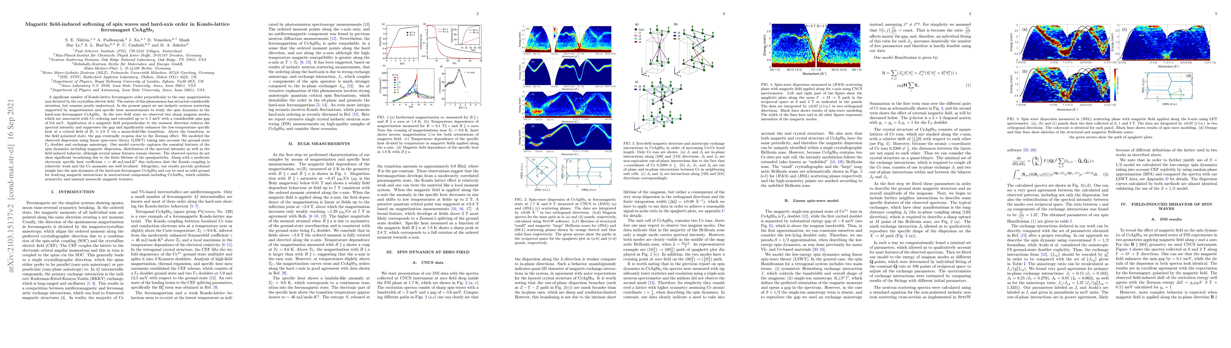 A significant number of Kondo-lattice ferromagnets order perpendicular to the easy magnetization axis dictated by the crystalline electric field. The nature of this phenomenon has attracted considerable attention, but remains poorly understood. In the present paper we use inelastic neutron scattering supported by magnetization and specific heat measurements to study the spin dynamics in the hard-axis ferromagnet CeAgSb2. In the zero field state we observed two sharp magnon modes, which are associated with Ce ordering and extended up to $\approx 3 meV with a considerable spin gap of 0.6 meV. Application of a magnetic field perpendicular to the moment direction reduces the spectral intensity and suppresses the gap and significantly enhances the low-temperature specific heat at a critical field of Bc ~ 2.8 T via a mean-field-like transition. Above the transition, in the field polarized state, the gap eventually reopens due to the Zeeman effect. We modeled the observed dispersion using linear spin-wave theory (LSWT) taking into account the ground state Gamma 6 doublet and exchange anisotropy. Our model correctly captures the essential features of the spin dynamics including magnetic dispersion, distribution of the spectral intensity as well as the field-induced behavior, although several minor features remain obscure. The observed spectra do not show significant broadening due to the finite lifetime of the quasiparticles. Along with a moderate electronic specific heat coefficient gamma = 46 mJ/mol K2 this indicates that the Kondo coupling is relatively weak and the Ce moments are well localized. Altogether, our results provide profound insight into the spin dynamics of the hard-axis ferromagnet CeAgSb2 and can be used as solid ground for studying magnetic interactions in isostructural compounds including CeAuSb2, which exhibits nematicity and unusual mesoscale magnetic textures.