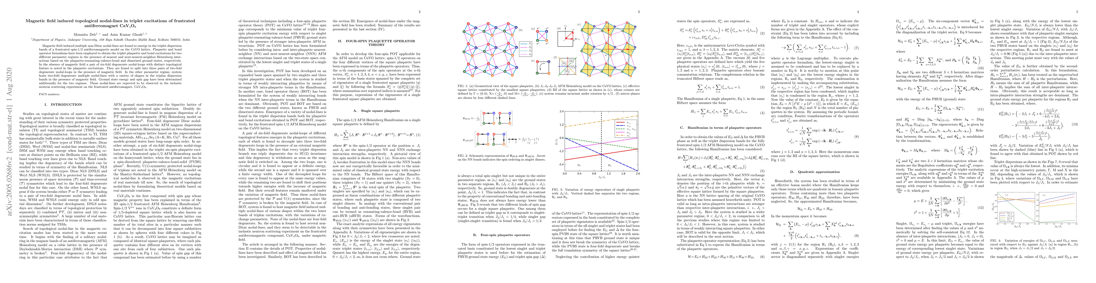 Researchers discovered magnetic field-induced topological nodal lines in a frustrated antiferromagnet CaV$_4$O$_9$, which could be detectable in neutron scattering experiments.