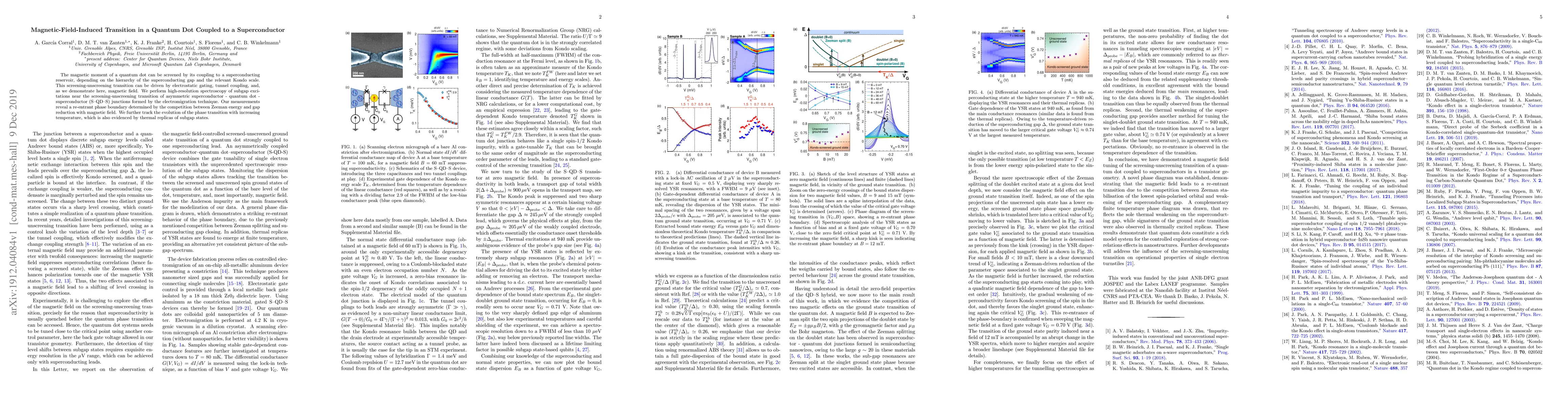 This paper investigates the magnetic-field-induced transition in quantum dot systems coupled to superconductors, revealing a re-entrant phase boundary influenced by the competition between Zeeman energy and superconducting gap reduction. The study uses high-resolution spectroscopy to observe the transition and its thermal dependence in S-QD-S junctions.