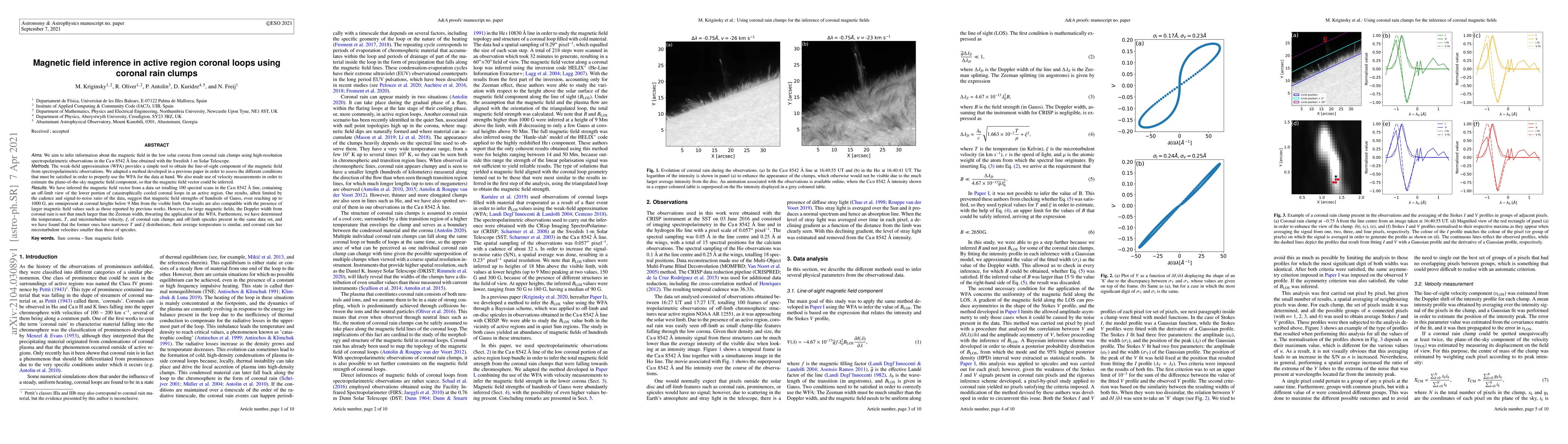 This study uses high-resolution spectropolarimetric observations to infer the magnetic field in coronal loops from coronal rain clumps. The weak-field approximation and velocity measurements enabled the estimation of magnetic field vectors, revealing strengths up to 1000 G in the lower corona.