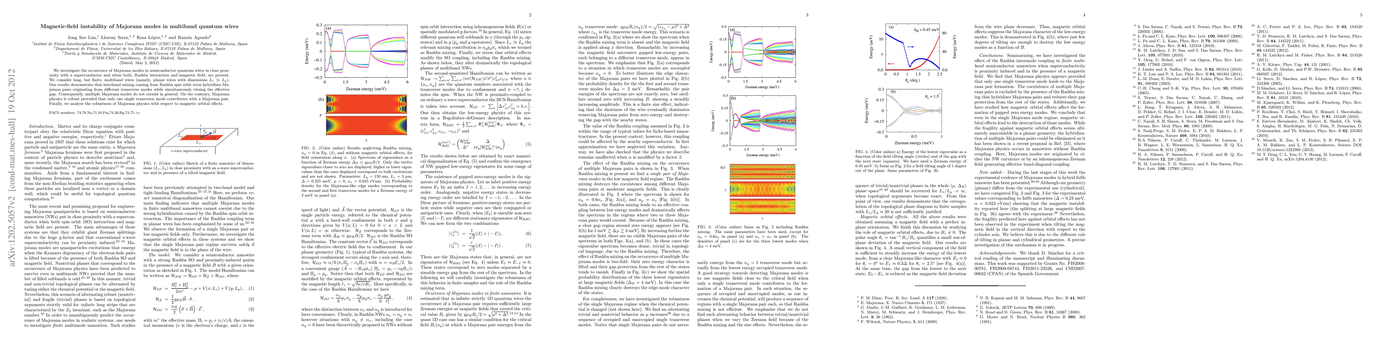 This paper examines Majorana modes in multiband quantum wires near superconductors under Rashba spin-orbit interaction and magnetic fields, showing that interband mixing disrupts coexistence of multiple Majorana modes, whereas a single transverse mode can still sustain robust Majorana physics. The study also analyzes the stability of Majorana modes against magnetic orbital effects.