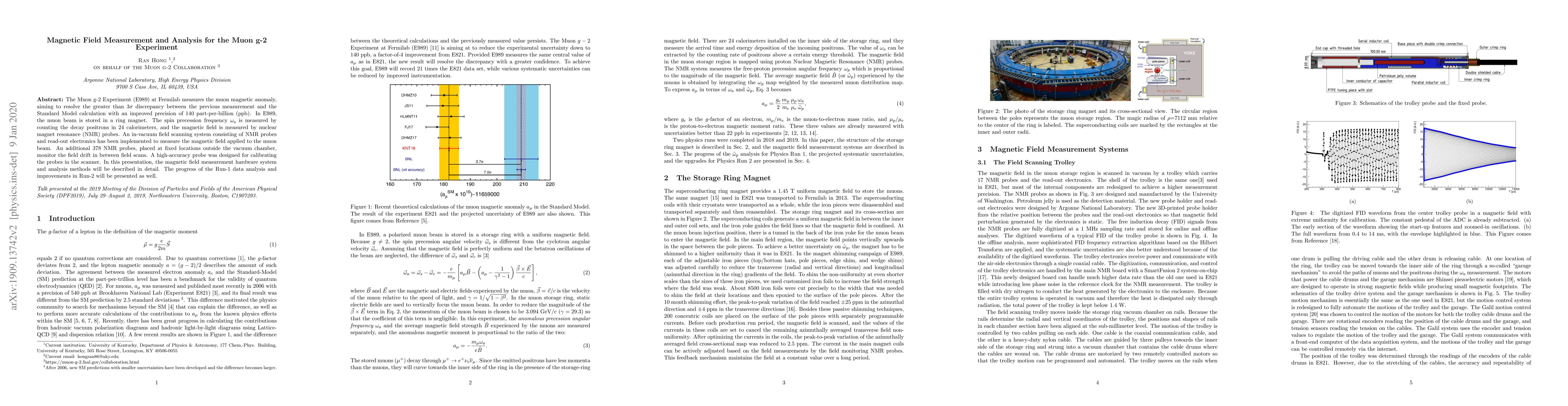 The Muon g-2 Experiment (E989) at Fermilab measures the muon magnetic anomaly, aiming to resolve the greater than 3$\sigma$ discrepancy between the previous measurement and the Standard Model calculation with an improved precision of 140 part-per-billion (ppb). In E989, the muon beam is stored in a ring magnet. The spin precession frequency $\omega_{a}$ is measured by counting the decay positrons in 24 calorimeters, and the magnetic field is measured by nuclear magnet resonance (NMR) probes. An in-vacuum field scanning system consisting of NMR probes and read-out electronics has been implemented to measure the magnetic field applied to the muon beam. An additional 378 NMR probes, placed at fixed locations outside the vacuum chamber, monitor the field drift in between field scans. A high-accuracy probe was designed for calibrating the probes in the scanner. In this presentation, the magnetic field measurement hardware system and analysis methods will be described in detail. The progress of the Run-1 data analysis and improvements in Run-2 will be presented as well.