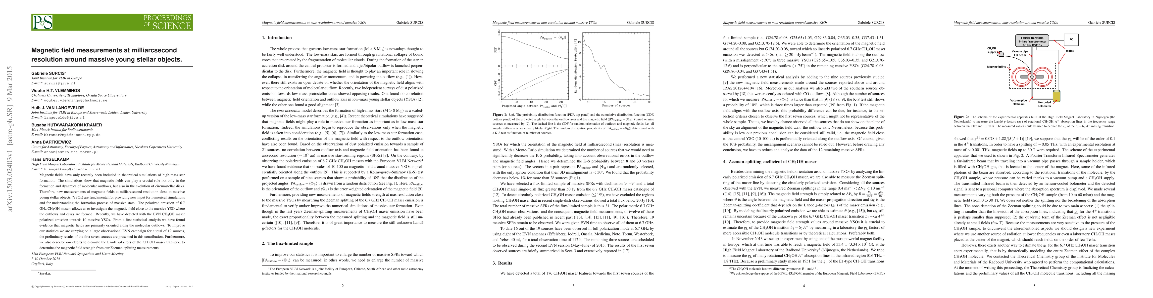 This paper reports on high-resolution magnetic field measurements around massive young stellar objects (YSOs) using polarized CH3OH maser emissions. The study finds that magnetic fields are primarily aligned with molecular outflows, providing crucial data for refining theoretical models of high-mass star formation.