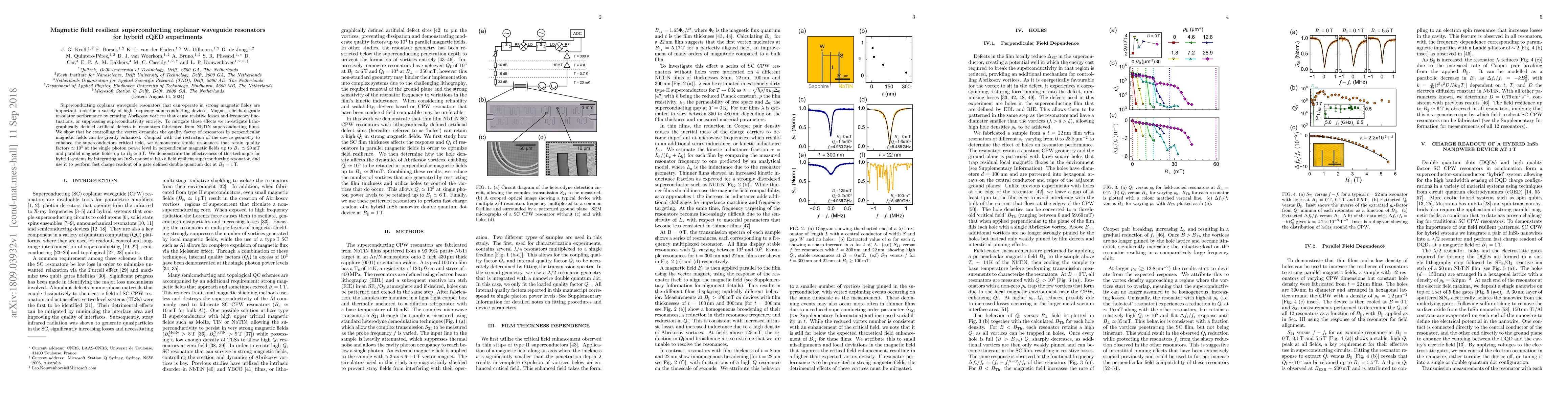 This paper presents superconducting coplanar waveguide resonators with artificial defects that maintain high quality factors in strong magnetic fields, enabling stable operation for hybrid cQED experiments. The technique enhances performance by controlling vortex dynamics and optimizing device geometry, demonstrating quality factors up to $10^5$ in fields up to 20 mT perpendicular and 6 T parallel.