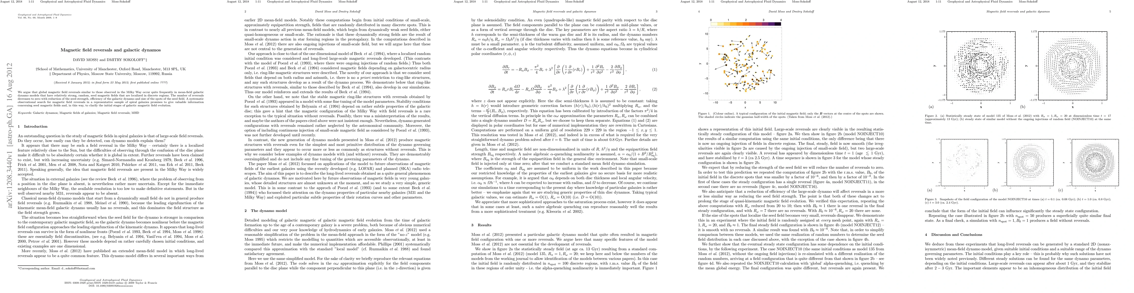 Research suggests that global magnetic field reversals occur frequently in simulated galactic dynamo models with strong seed magnetic fields. Observational searches of spiral galaxies may provide insights into seed magnetic fields and the initial stages of galactic magnetic field evolution.