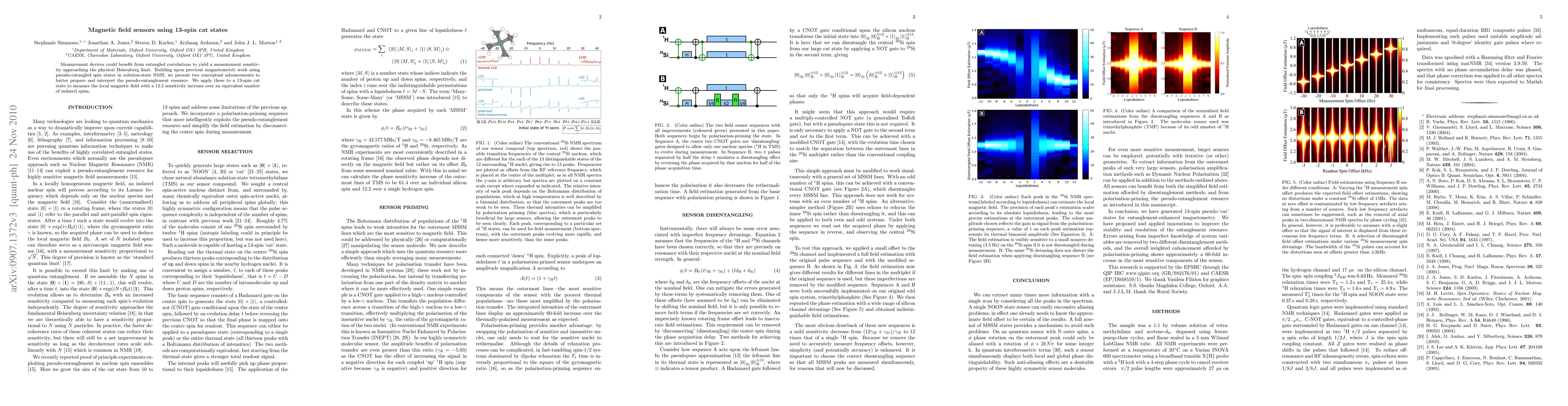 Measurement devices could benefit from entangled correlations to yield a measurement sensitivity approaching the physical Heisenberg limit. Building upon previous magnetometric work using pseudo-entangled spin states in solution-state NMR, we present two conceptual advancements to better prepare and interpret the pseudo-entanglement resource as well as the use of a 13-spin cat state to measure the local magnetic field with a sensitivity beyond the standard quantum limit.
