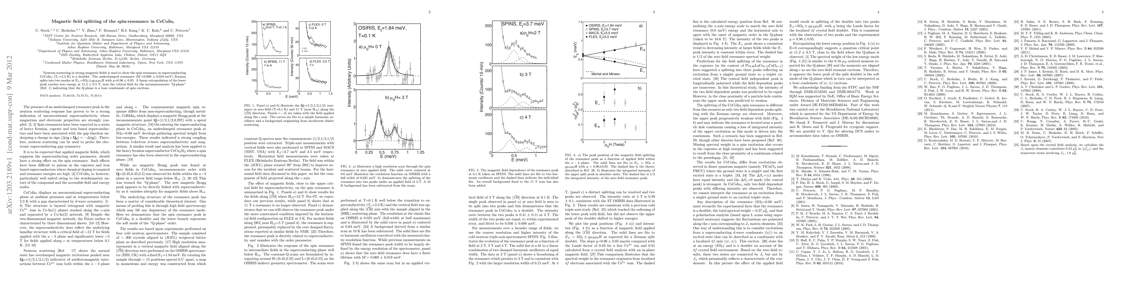 Neutron scattering in strong magnetic fields is used to show the spin-resonance in superconducting CeCoIn5 (Tc=2.3 K) is a doublet. The underdamped resonance (\hbar \Gamma=0.069 \pm 0.019 meV) Zeeman splits into two modes at E_{\pm}=\hbar \Omega_{0}\pm g\mu_{B} \mu_{0}H with g=0.96 \pm 0.05. A linear extrapolation of the lower peak reaches zero energy at 11.2 \pm 0.5 T, near the critical field for the incommensurate "Q-phase" indicating that the Q-phase is a bose condensate of spin excitons.