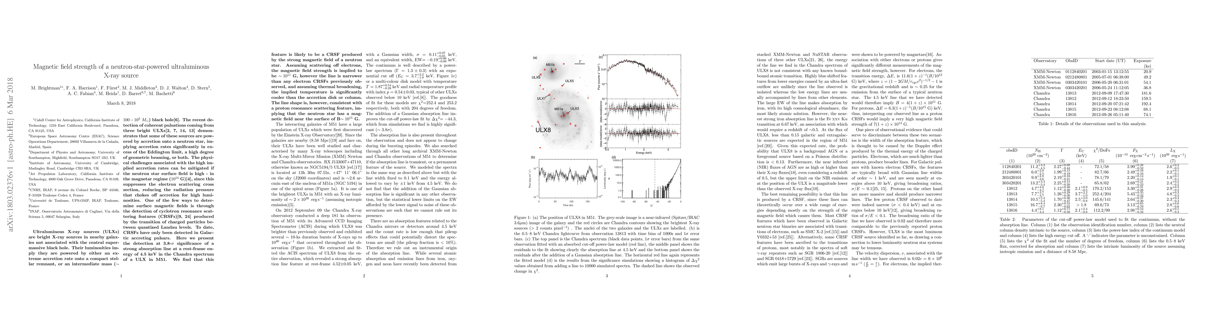 This paper reports the detection of a cyclotron resonance scattering feature (CRSF) in the X-ray spectrum of an ultraluminous X-ray source (ULX) in M51, suggesting a strong magnetic field on the neutron star powering the ULX. The inferred magnetic field strength is approximately $10^{15}$ G, indicating a magnetar-like field that could help explain the high accretion rates observed.