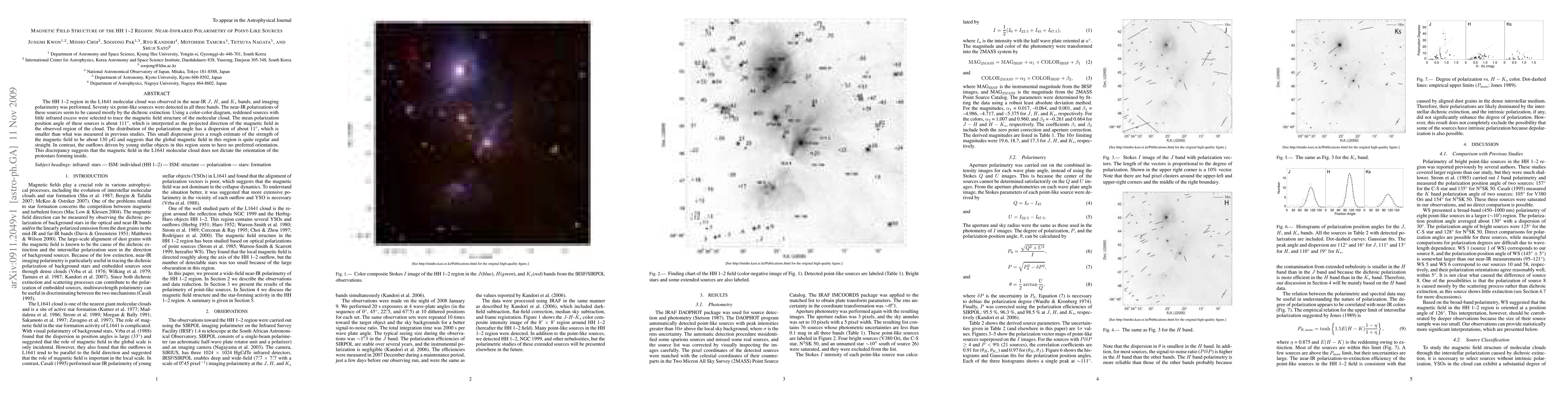 This study uses near-infrared polarimetry to investigate the magnetic field structure in the HH 1-2 region of the L1641 molecular cloud, finding a mean polarization angle indicative of a regular magnetic field. The small dispersion in polarization angles suggests a strong, straight global magnetic field of about 130 microG, contrasting with the lack of preferred orientation in the region's outflows.