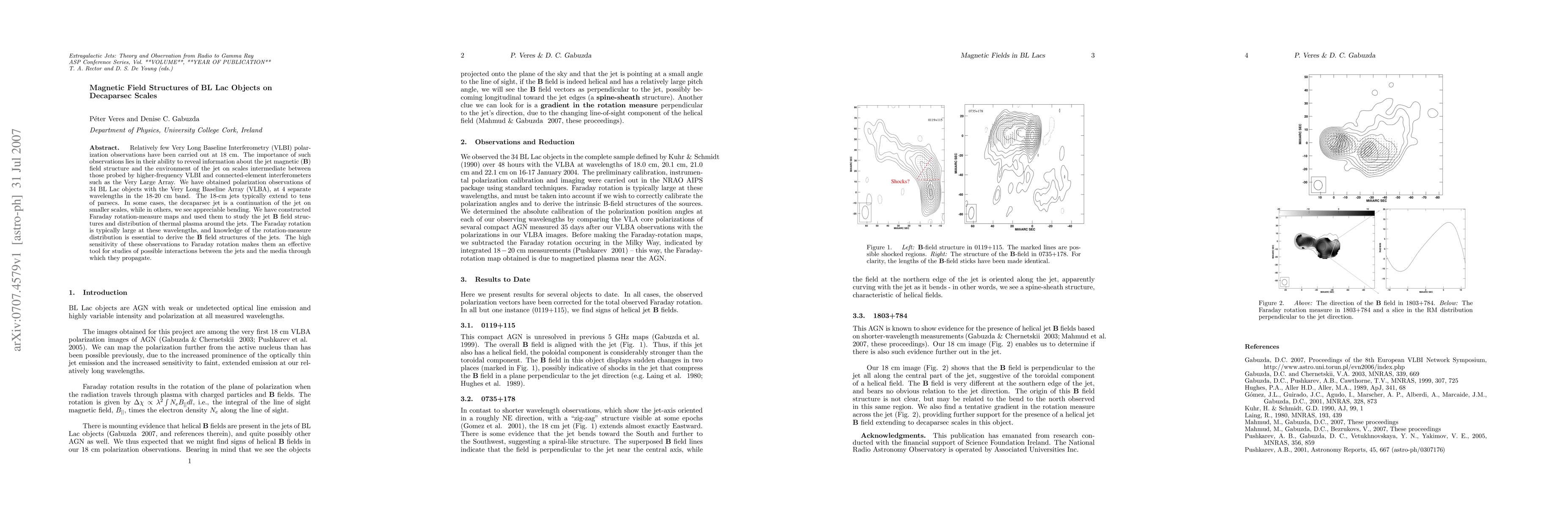 This research utilizes the Very Long Baseline Array (VLBA) to conduct polarization observations of 34 BL Lac objects at 18-20 cm wavelengths, revealing jet magnetic field structures and thermal plasma distribution on decaparsec scales. Large Faraday rotation observed necessitates detailed rotation-measure maps for accurate {f B} field structure derivation, highlighting the effectiveness of these observations in studying jet-medium interactions.