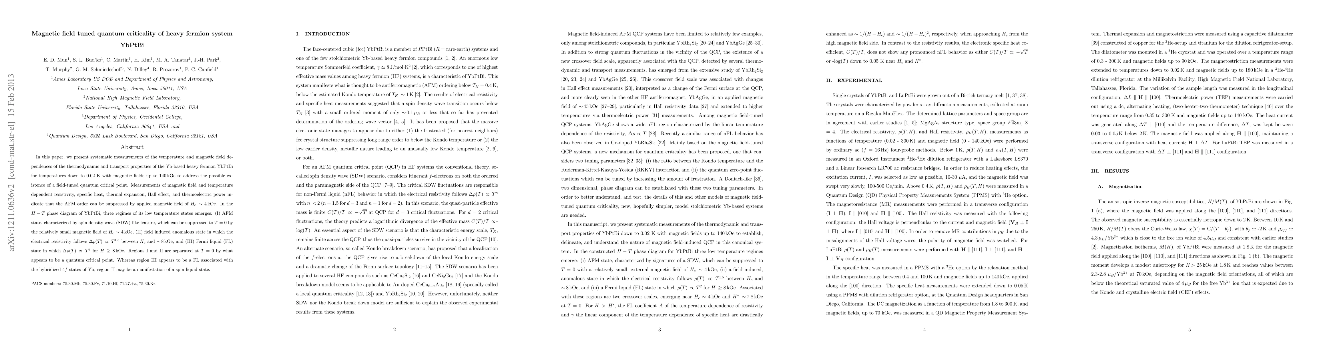 This paper investigates the magnetic field and temperature dependence of YbPtBi, a heavy fermion system, revealing three distinct low-temperature states: an AFM state suppressed by a small magnetic field, a field-induced anomalous state, and a Fermi liquid state. A quantum critical point appears to separate the AFM and anomalous states.