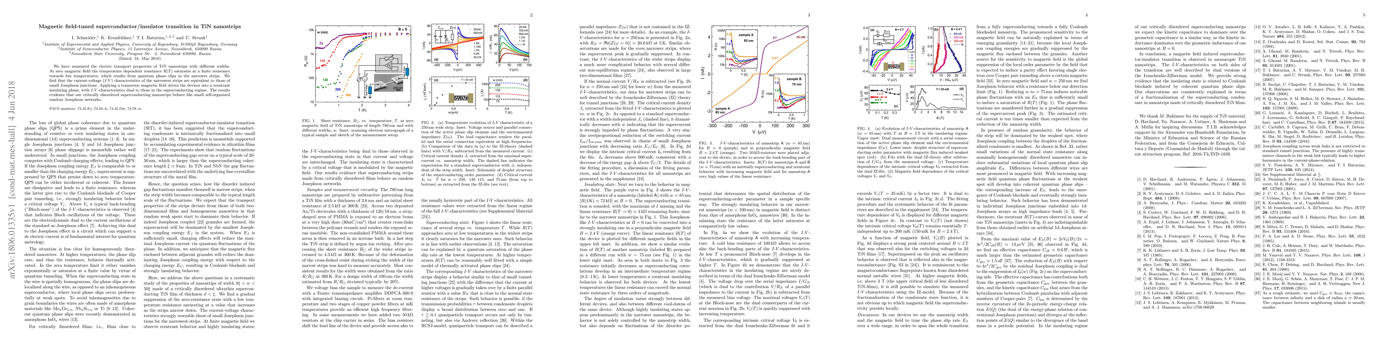 Researchers discovered that applying a magnetic field to thin strips of titanium nitride (TiN) causes them to transition between superconducting and insulating phases, mimicking the behavior of small Josephson junctions.