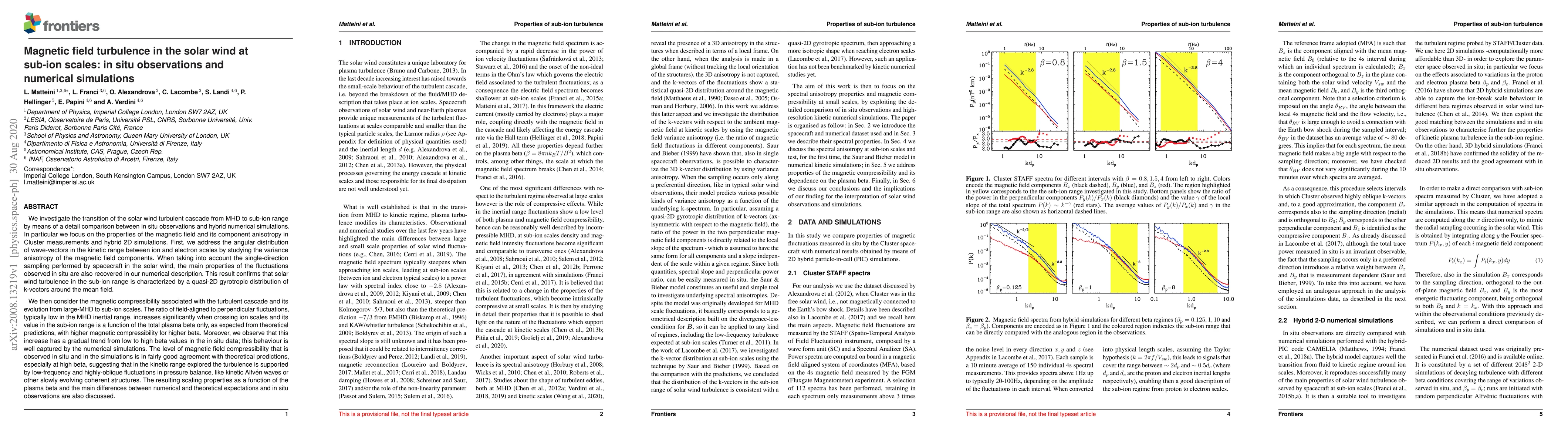 This paper investigates the transition of solar wind turbulence from magnetohydrodynamic (MHD) to sub-ion scales through a detailed comparison of in situ observations and hybrid numerical simulations. The study finds that solar wind turbulence in the sub-ion range exhibits a quasi-2D gyrotropic distribution of wave-vectors and increased magnetic field compressibility, particularly at higher plasma beta values, aligning well with theoretical predictions.